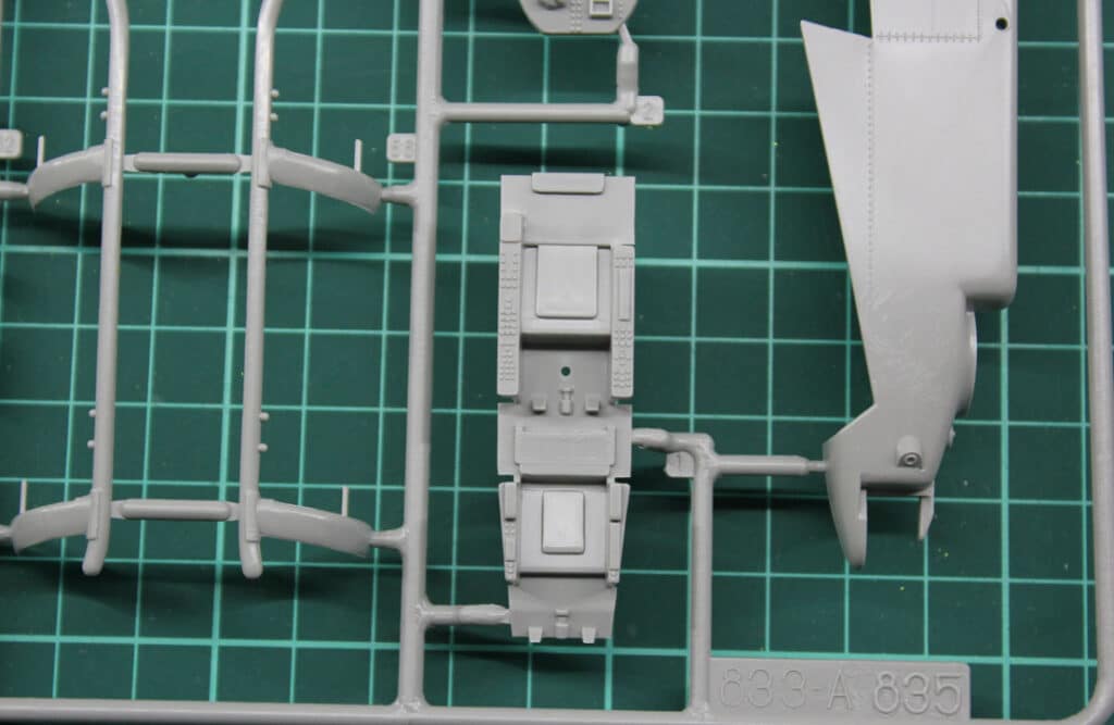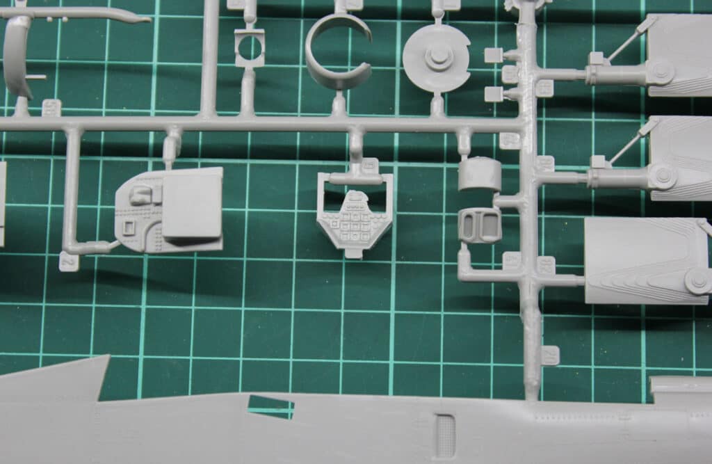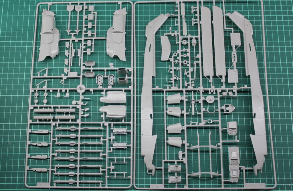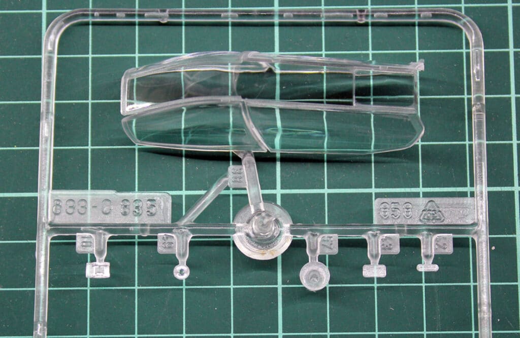 As far as the details are concerned, the model has all the equipment it needs to be placed on the runners, only these look a bit simple by today’s standards. It starts with the cockpit. It’s all included. But if a younger hobbyist would say: “The seats look like grandpa’s wing chair” he would not be entirely wrong. So be it. In any case, however, the imprinted cords that represent the harness should be removed and replaced with cords from the aftermarket or homemade ones. That kind of thing takes a lot of refinement. We would have liked Revell Decals for the fittings. Actually standard these days.