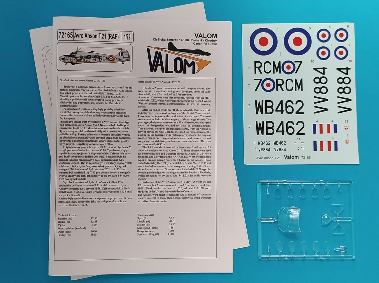 “New Model Kits, Valom 1/72, Avro Anson T.21, + C.19″……………………Valom