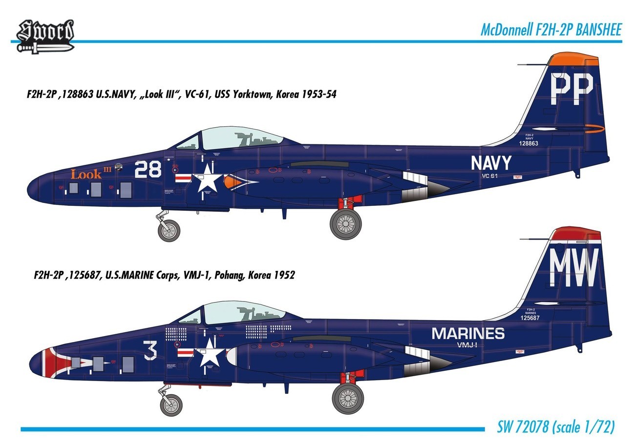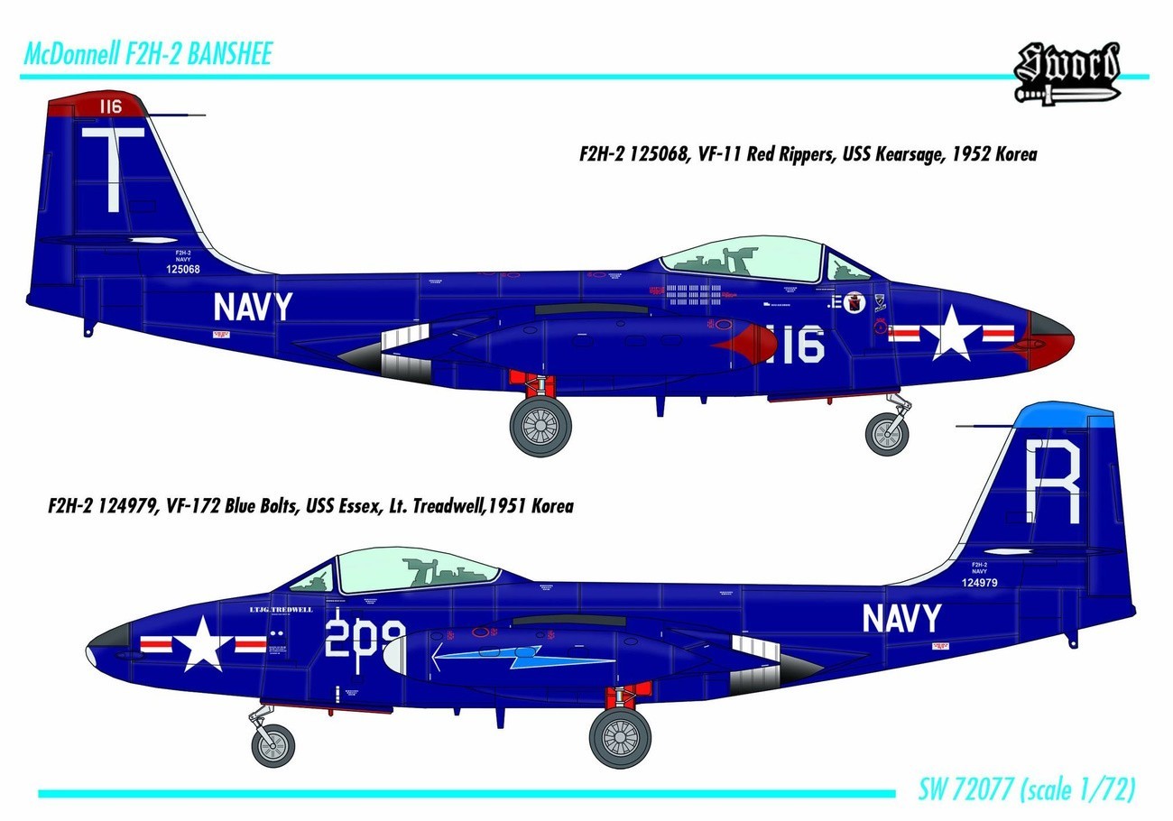 Sword Models is to re-issue at the end of the month the 1:72 scale McDonnell F2H-2 Banshee and F2H-2P Photo Banshee