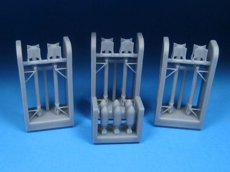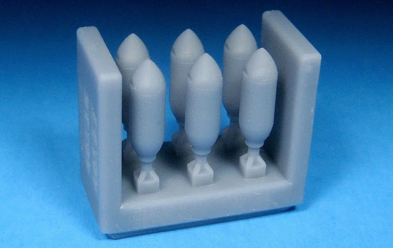 Sea Furies and other aircraft. This set contains six super detailed, 3D printed 3-inch rockets and rails. They are carried by