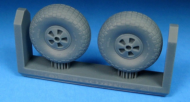 This set consists of a pair of accurate, 3D printed mainwheels, featuring detailed early style slotted hubs, block tread tires and raised tire data. Fitted to the early Mk IV Bomber, PR version and NF II Night Fighter. A simple detail upgrade that you can install on your Mosquito. Gerry Mos. CAD. Gerry Mos.
