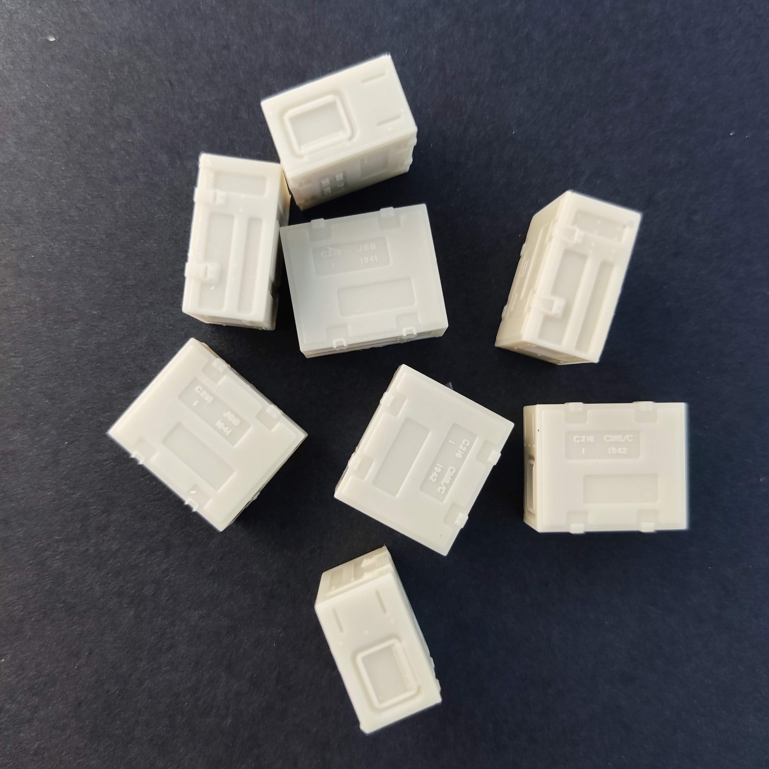 Three ammo boxes for Bofors guns and three sets of storage for F30 LRDG