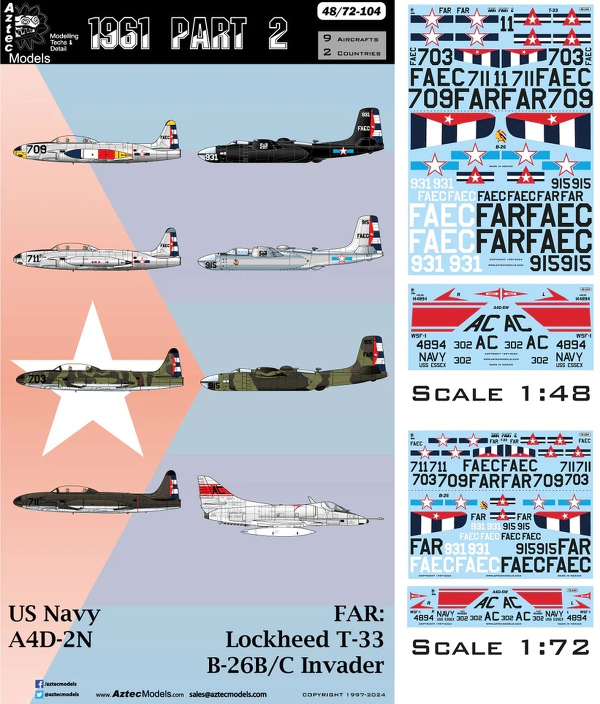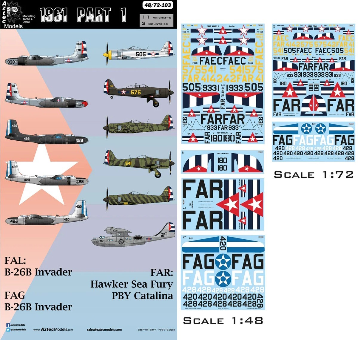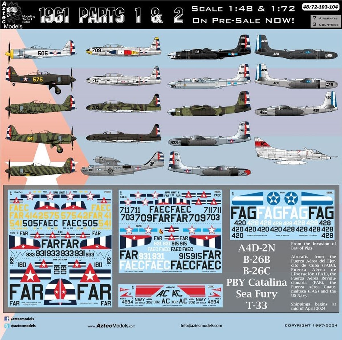 Next month, Aztec Models will release two new decal sets in 1:48 and 1:24 scales featuring aircrafts from the Bay of Pigs.