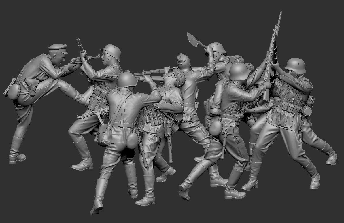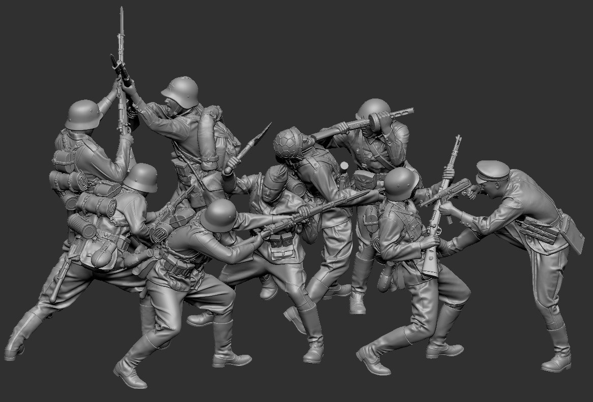 “Hand-to-hand combat between the Red Army and the Wehrmacht. “Summer 1941-1942”. Dmitry Shishkov, sculptor. Scales 1/35 and 1/16. 3D printing.