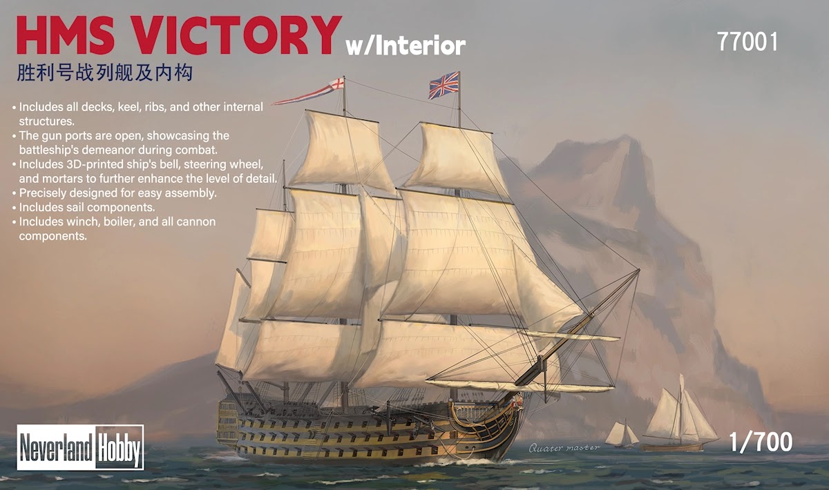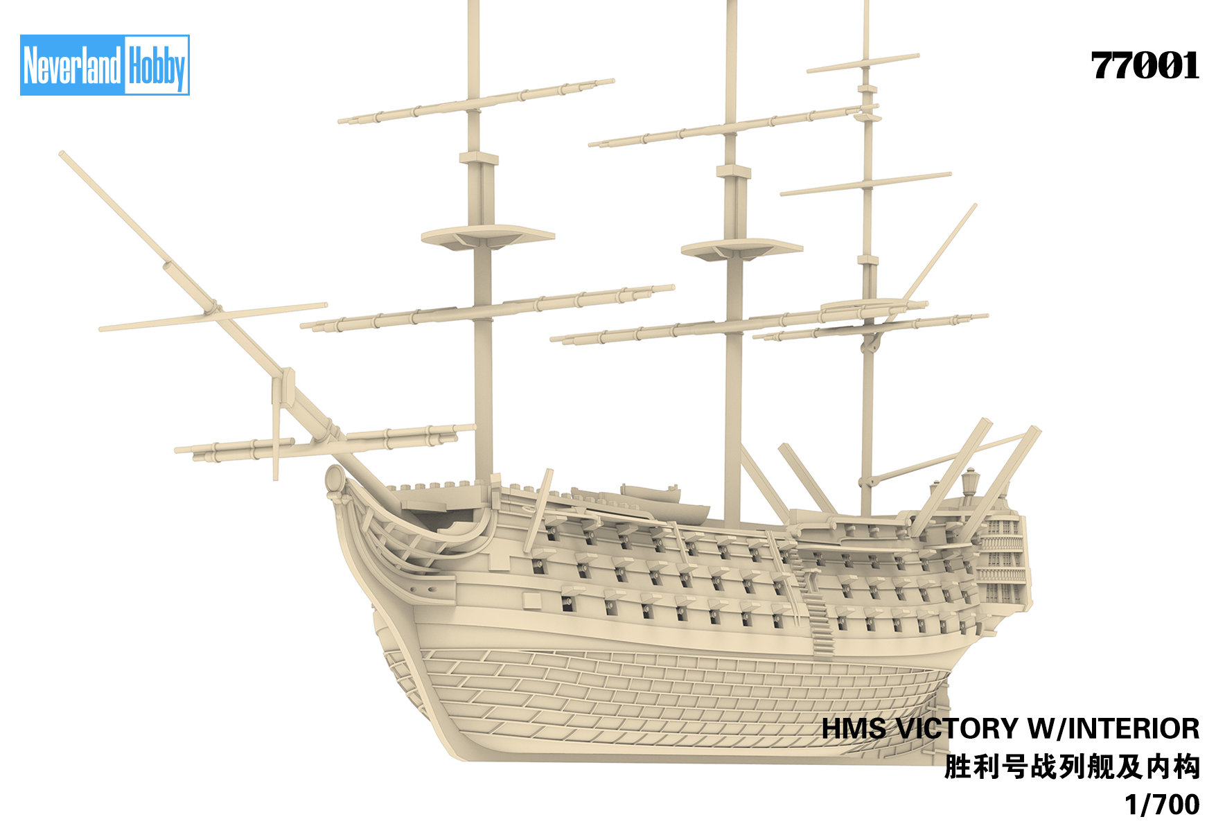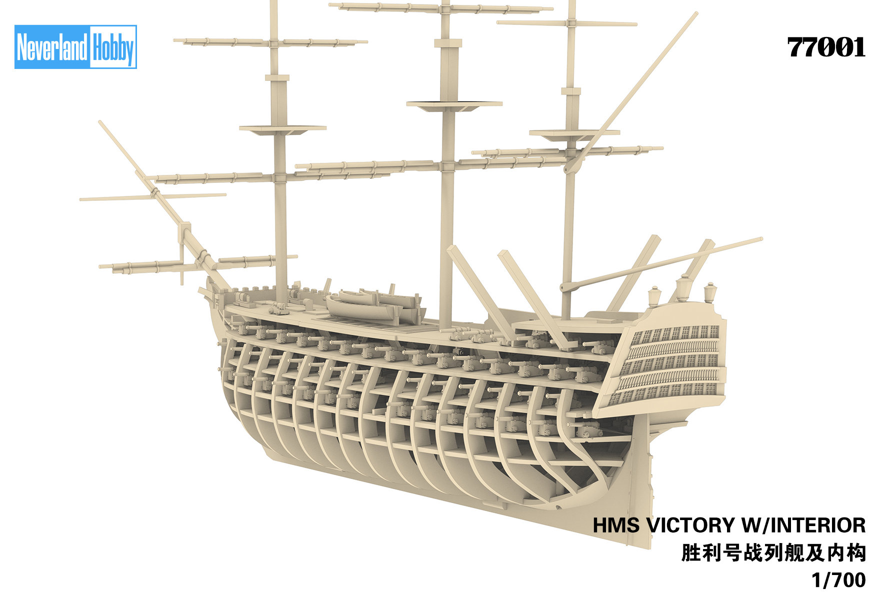 This new Neverland Hobby kit, no#77001. “HMS Victory”, with an interior and a complete exterior. It’s a 1/700th-scale kit. It’s compact but packed full of detail. A complete keel is included. This 1/700th scale model ship will be able to showcase its internal structure.