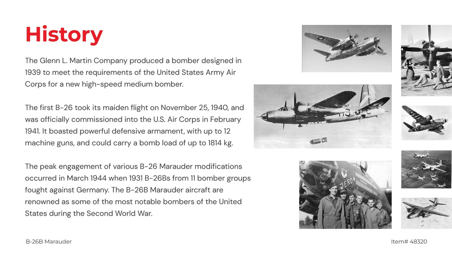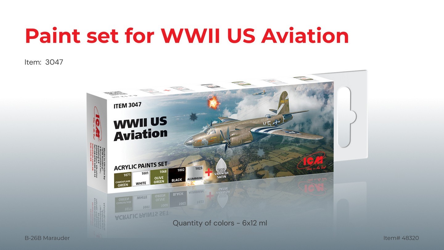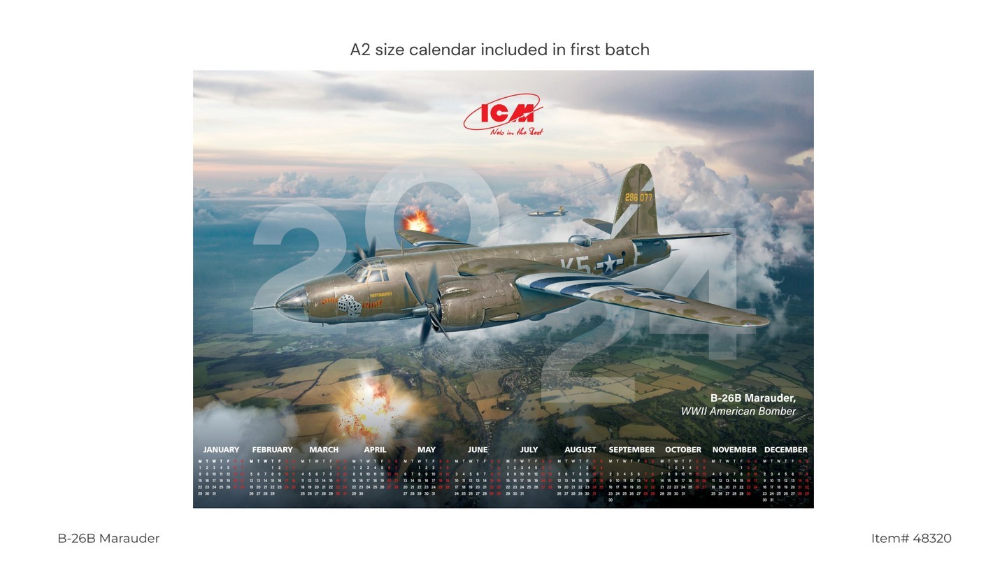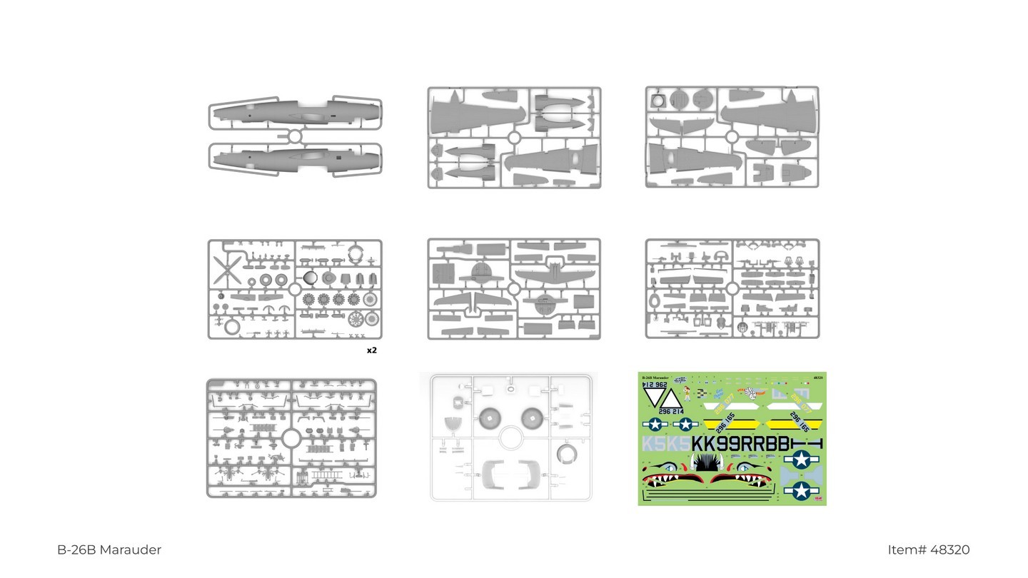 ICM is releasing the B-26B Marauder in 1/48 this month. You can watch for further details, but in the meantime you can see the information about this kit on the pictures below.