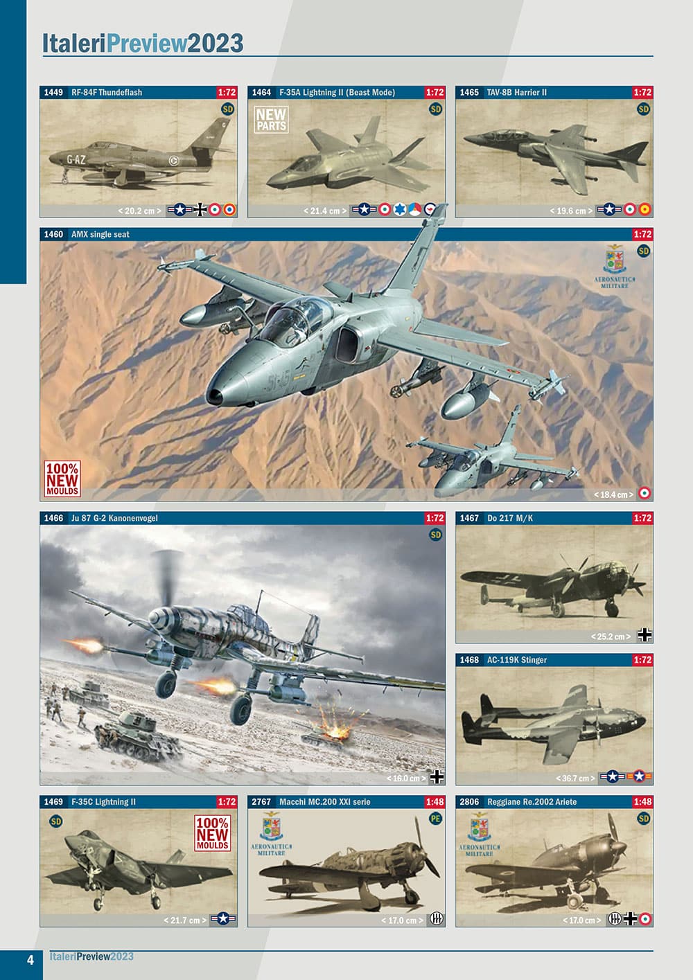 We have obtained a preview of Italeri’s upcoming 2023 catalog. Some of the new models caught our attention and we are impressed! The new items include a mix of surprising tooling in both small and large modeling scales. While not all of the new items are clearly marked, we are confident that our community will be able to discover them by browsing through the extended catalog. You can also view larger images by double-clicking on the preview pictures to access a slideshow.
