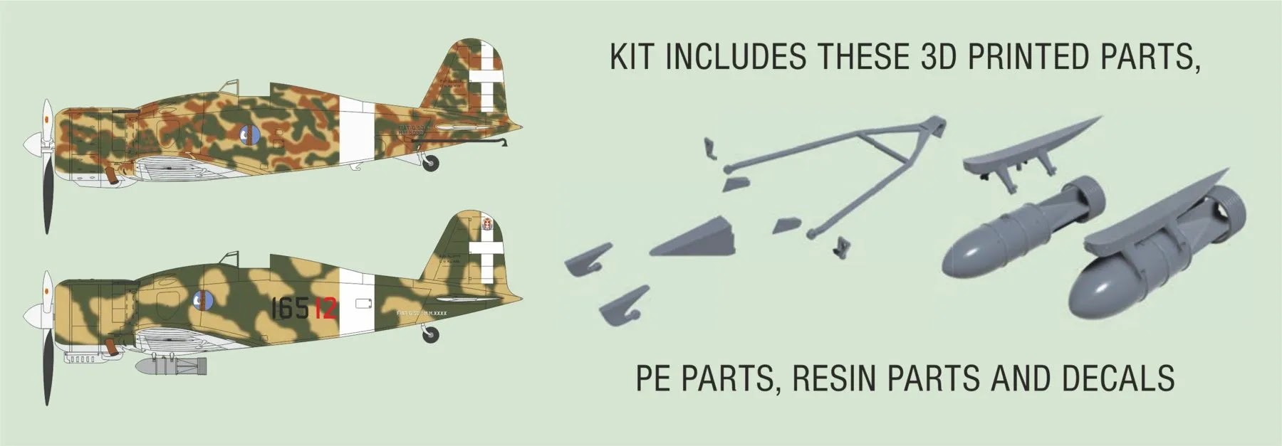 In Special Hobby’s September new kits we see mostly small scale models, plus the larger scale 1/32nd scale Fiat G.50bis that comes in the bomber and navalized versions. Other model kits in 1/72 are the P-40N with its very appealing schemes, the colourful B-12A interwar bomber, as well as our reissued 1/72 SMB.2 French Jet Fighter. In October, we will announce some more detail sets for the model. Our range of model kits received a new addition not long ago in the shape of the 1/72SH72505 F84F Thunderstreak Reborn Luftwaffe model. This kit contains a fragment from the F-84F which crashed on our soil. The thousand kits made were all sold almost immediately. As more fragments were not available, we wondered what would happen next. All the time spent on colour schemes and decals could have resulted in more kit sets being sold. The decision was made to release the model again, but without the fragment. Instead, a mask pre-cut and the 4 machine gun noses were 3D printed. This release is also accompanied by a re-release of another much loved kit, the 1/72 SH72388 Mirage F.1C/C-200 ‘Armee de I’Air’ and a new reboxing of the 1/48 scale CAC CA-19 Boomerang. The 1/72-scale 3D printed M29C kit is also included in this release. In 1/48-scale, there are more detail sets to go with the TBF-3/TBM-3 Avenger kit. 100-SH32089
