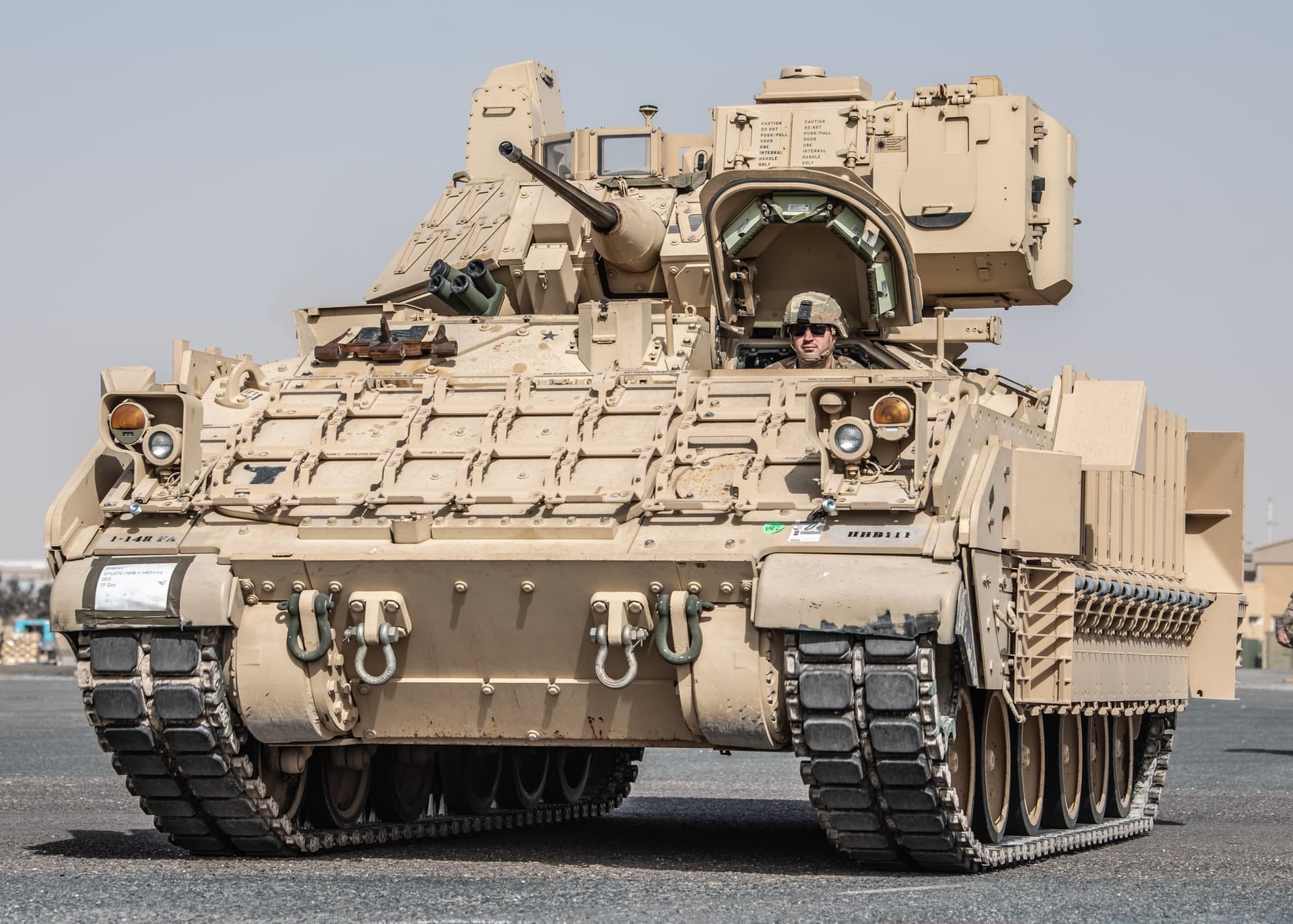 M7A3 Bradley BFIST The BFIST (Bradley Fire Support Team) acts as the “Eyes” for the US Army’s artillery units. The M981 Fire Support Team Vehicle (FISTY) was replaced by the newer M7A3 Bradley BFIST. The BFIST is based on the Bradley M3A2 Operation Desert Storm chassis. It retains all the key Bradley features, while enhancing its reliability, availability and maintainability. The BFIST is assigned to the Armored Reconnaissance Battalion and Combined Arms Battalions within the Armored Brigade Combat Team of US Army. The US Army BFIST is seen on manoeuvres. This one has no BRAT armor on its front. Turrets can be rotated 360o electronically, with weapons that can be raised from -10o to +60o. On the left-hand side of the turret, the standard Bradley IFV TOW antitank guided missiles are replaced with target acquisition optics. On this M7 BIST you can see that instead of TOW antitank missiles, this “bin” is equipped with target identification equipment. The vehicle is capable of detecting targets up to a 20-km distance. The vehicle has four crew members: the driver in front, the two in the turret and the one in the troop compartment in the back. It has a 400-km range and a Cummins VTA-903T 8-cylinder turbocharged diesel engine that produces 600hp. Its torsion bar suspension includes six dual rubber-tired road wheels on each side, with the drive sprocket at the front and the idler at the rear.