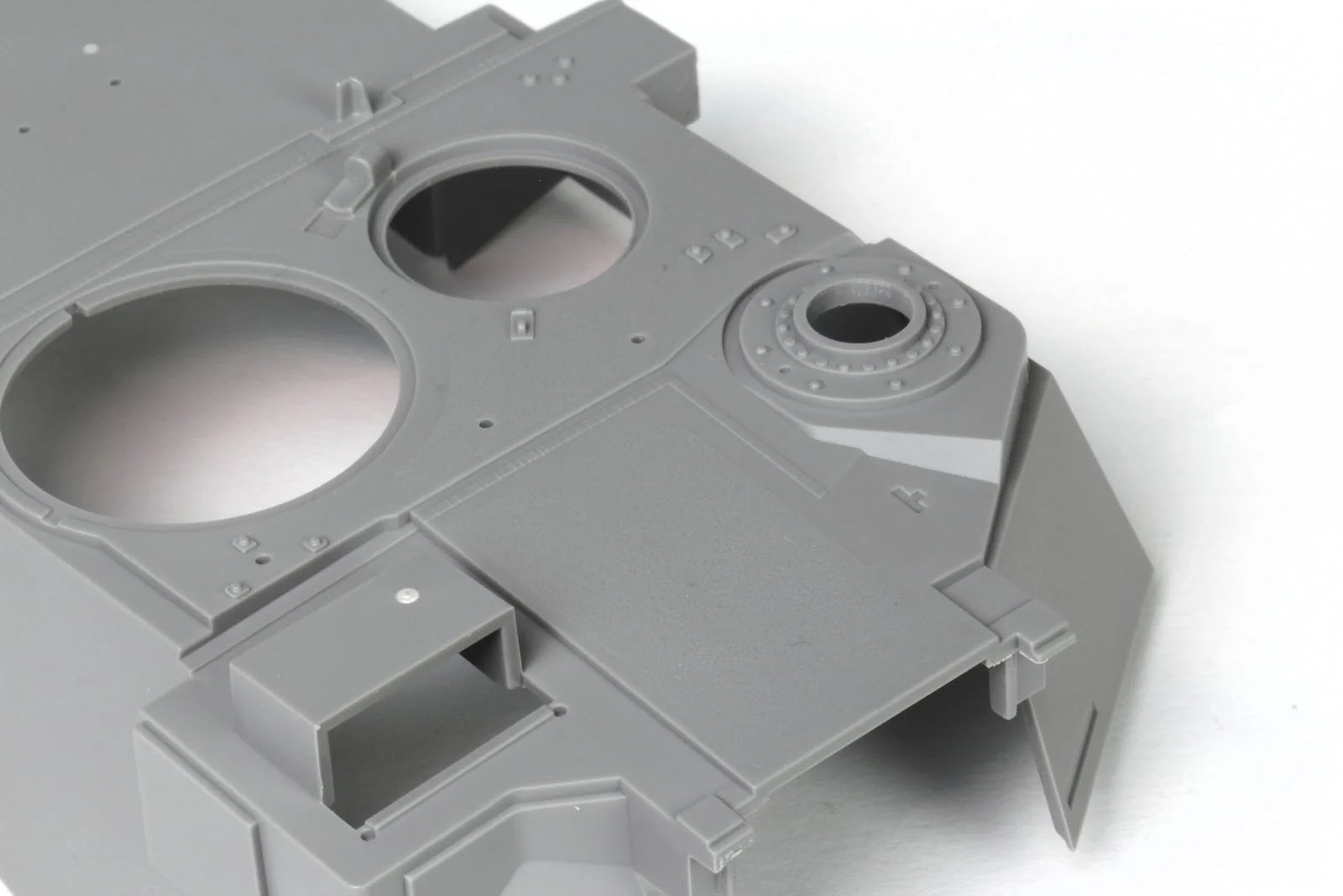 The turret details and welds are impressive. The necessary scale details are provided by photo-etched components. All optics, front and rear lights are included in clear parts. Clear parts are included for all optics, front and rear lights.