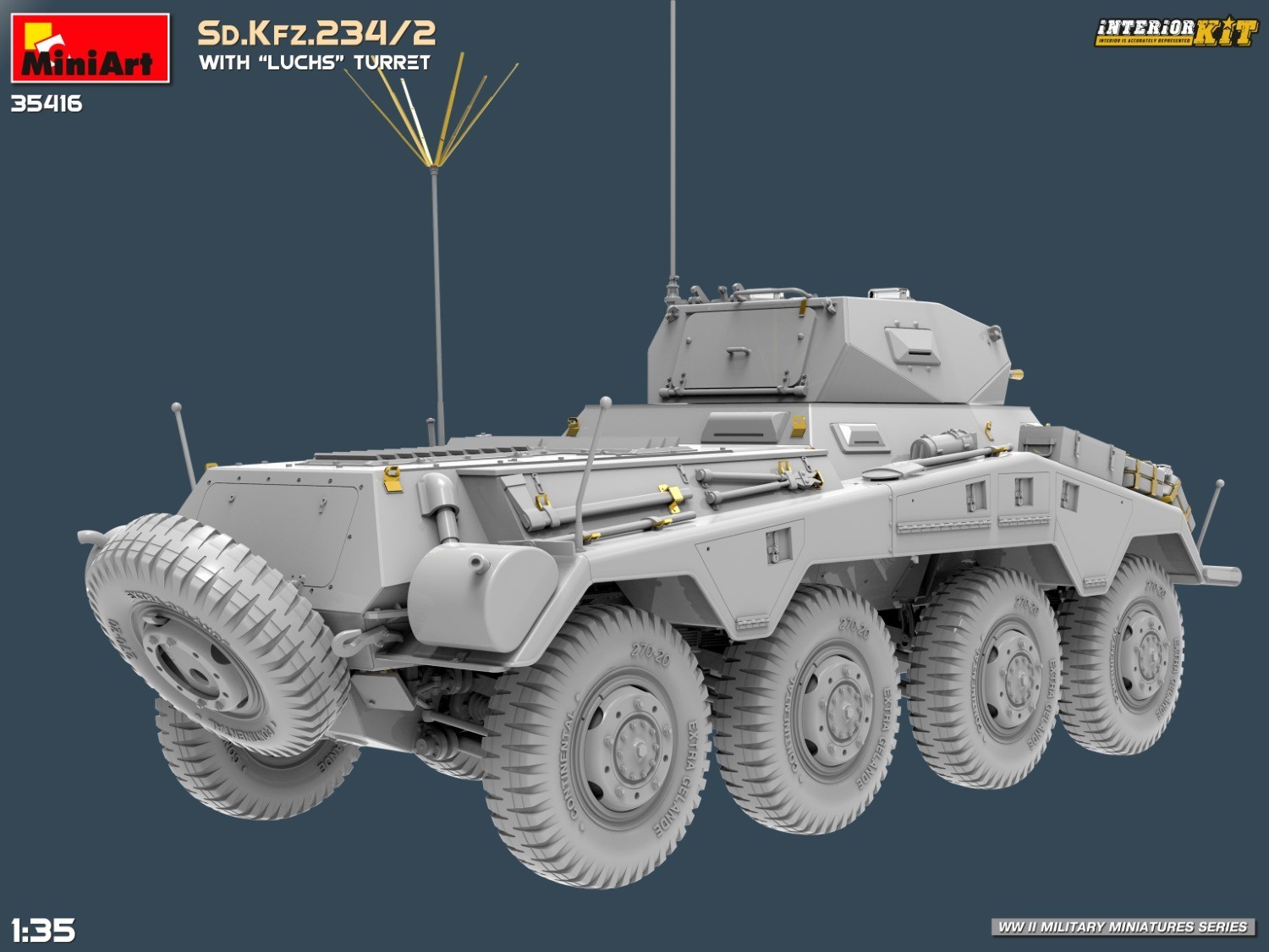 MiniArt is releasing a new kit in 1:35 Scale, #35416 Sd.Kfz.234/2 with “LUCHS TURRET”. Interior kit