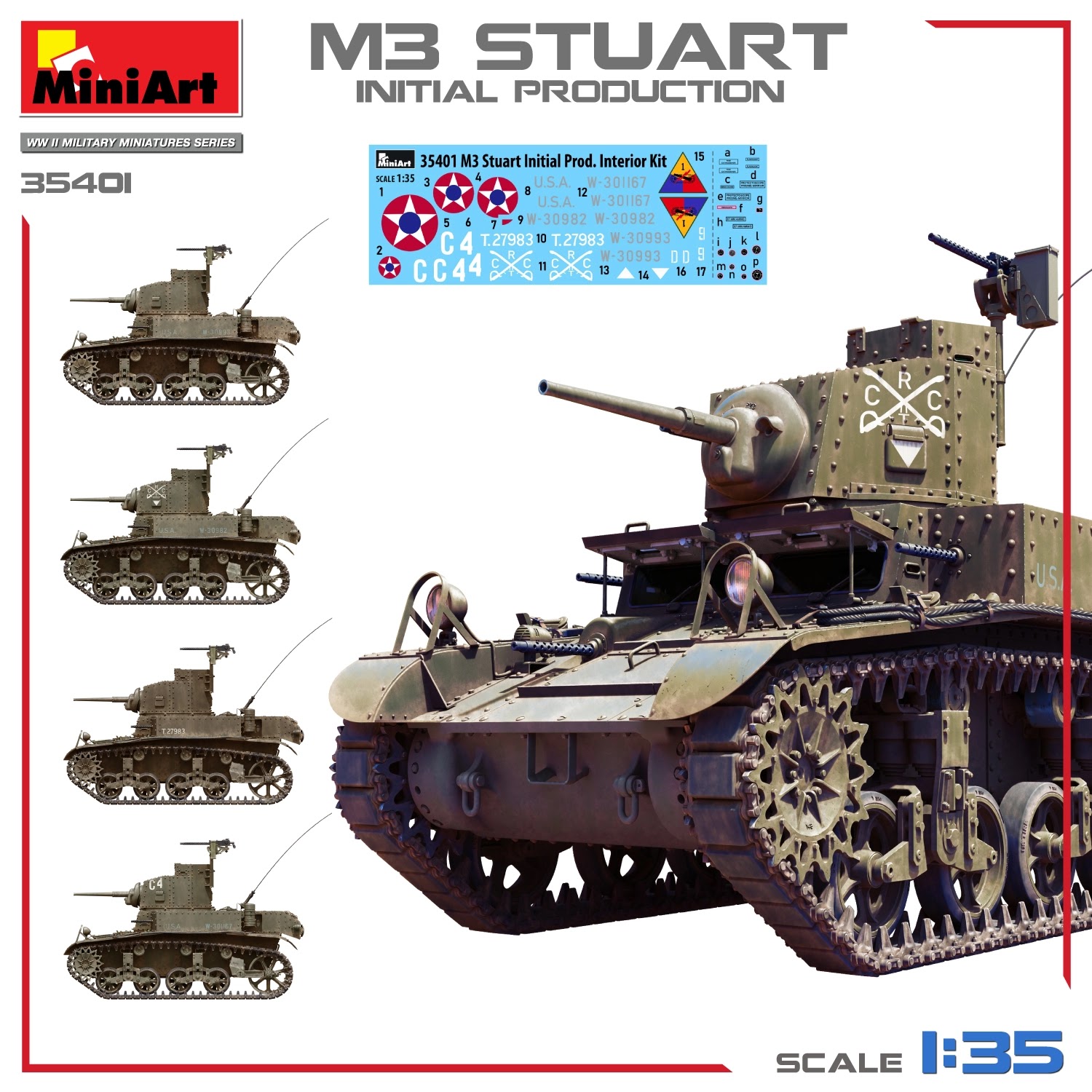 MiniArt’s new-tooled 1/35th scale M3 Stuart – Initial Production kit features – as it says on the tin, a complete with with all of the interior and six marking choices included in this first model. It is likely that there will be a version of this kit without the interior, however it’s so tiny that who would resist?