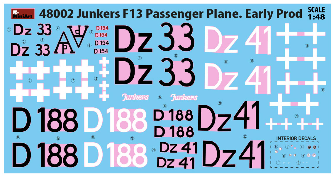 The kit contains three marking choices in the box.Full engine & clear parts are includedWe first saw the nucleus of this new series of 1/48th scale Junkers J13 from a cryptic post on Facebook earlier this year. This new tooling from MiniArt in 48th Scale looks to be the Junkers F13 Early Production. In 1920 it entered service, and 322 aircrafts were built over a decade. The last recorded commercial flight operated by Germany took place just before the outbreak of World War II in 1939.