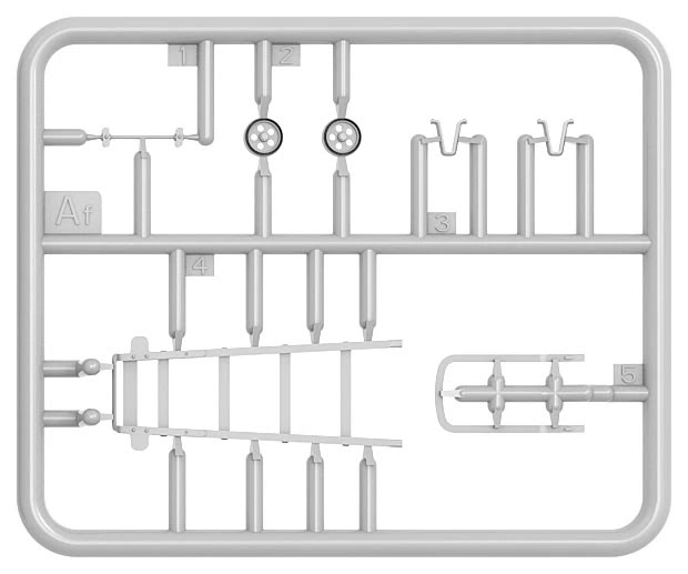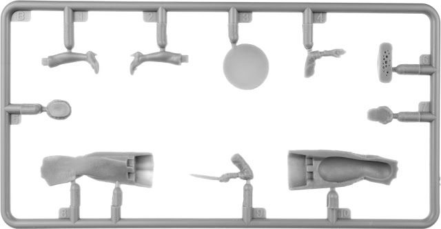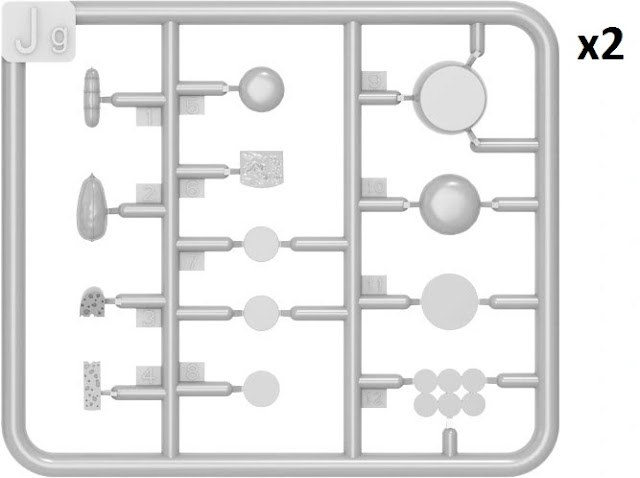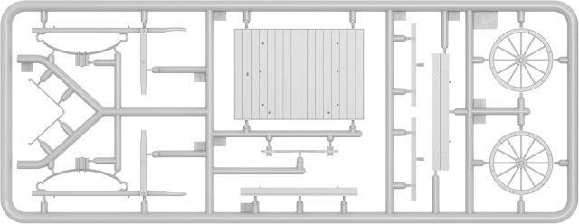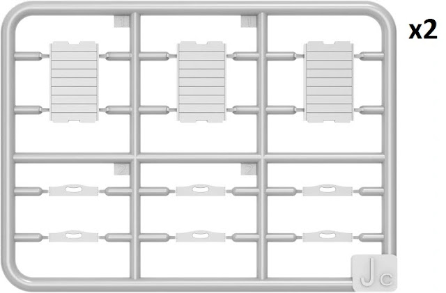 Two sprues of picket crates are supplied for the cheese to be positioned in at the dart.