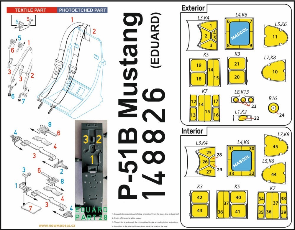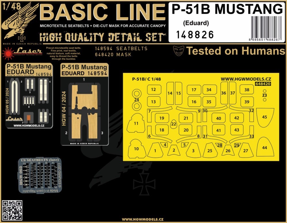 HGW released Basic Line [Paint masks and Seatbelts] set for Eduards P-51B Mustang in 1:48 scale.