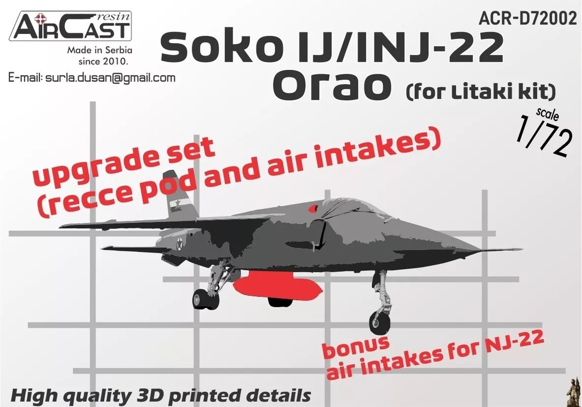 Aircast Resin released detail resin sets and 3d-printed parts for the J-22 Orao in 1:72 scale.