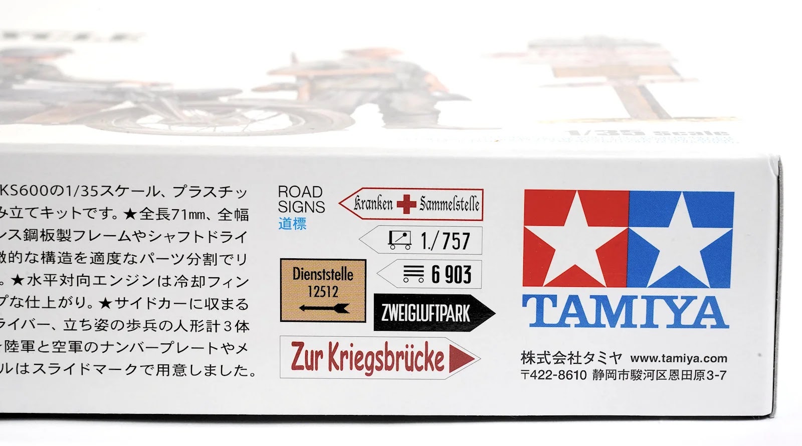 This new release is the Zundapp KS600, with the boxing coming with the inclusion of three figures. This box is typical Tamiya with the beautifully drawn drawing and a white background.
