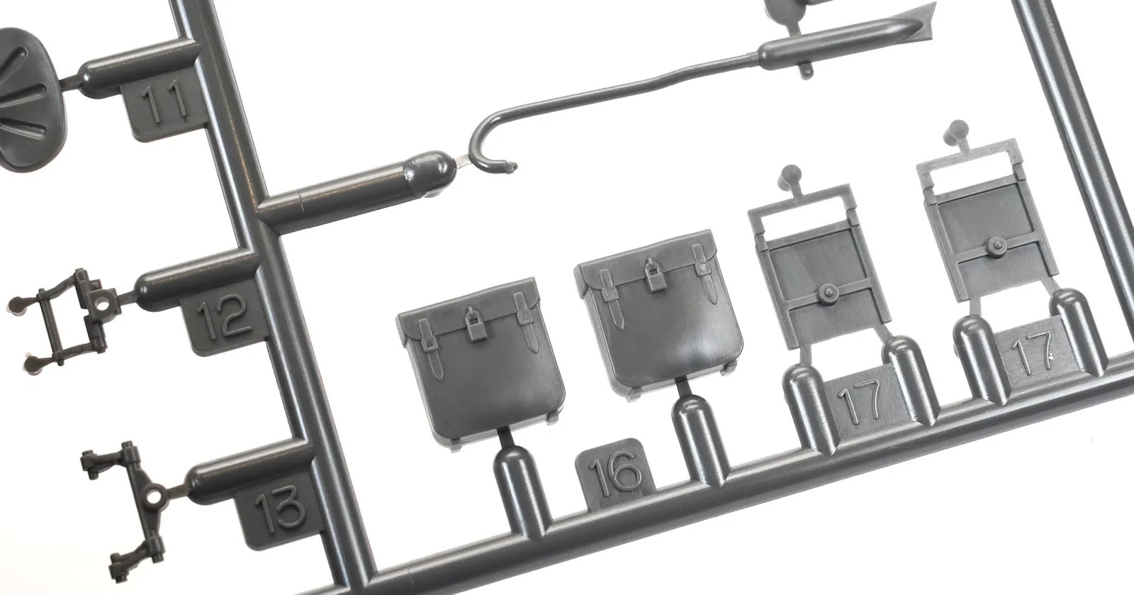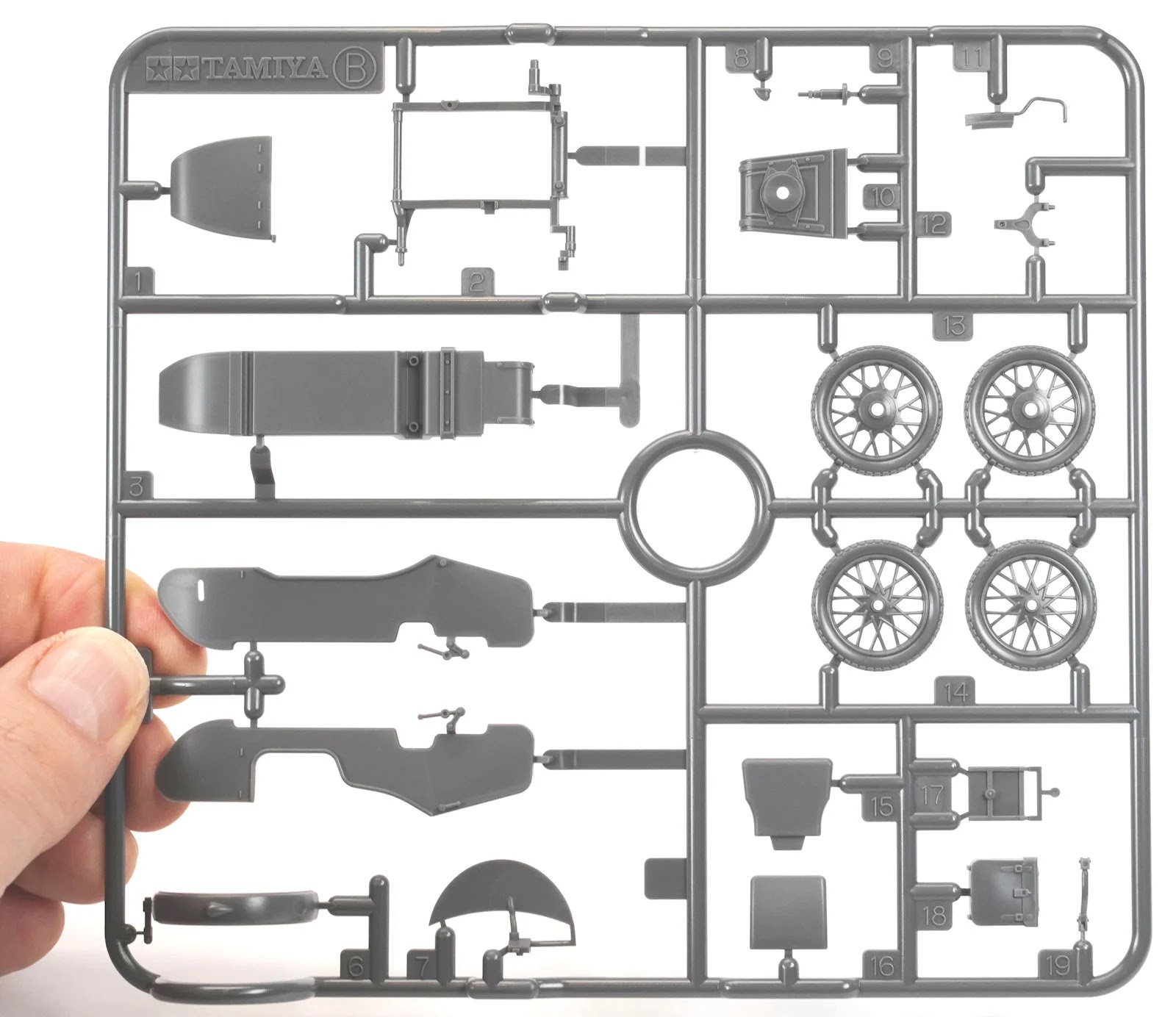 …and Sprue B the side car. The bike and sidecar are on separate sprues, which I think is a good idea. They are just so chunky and overscale.