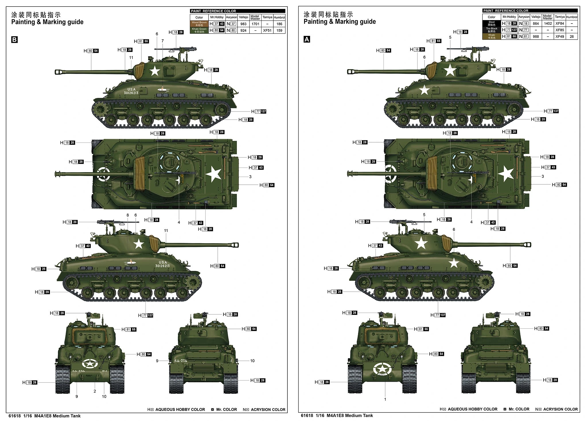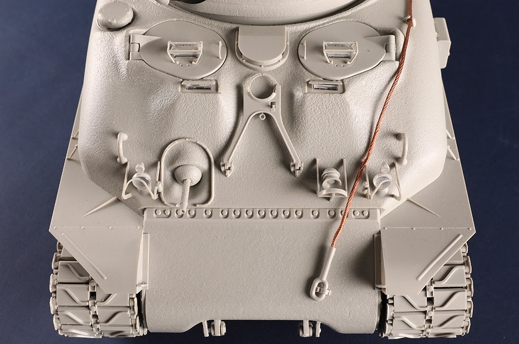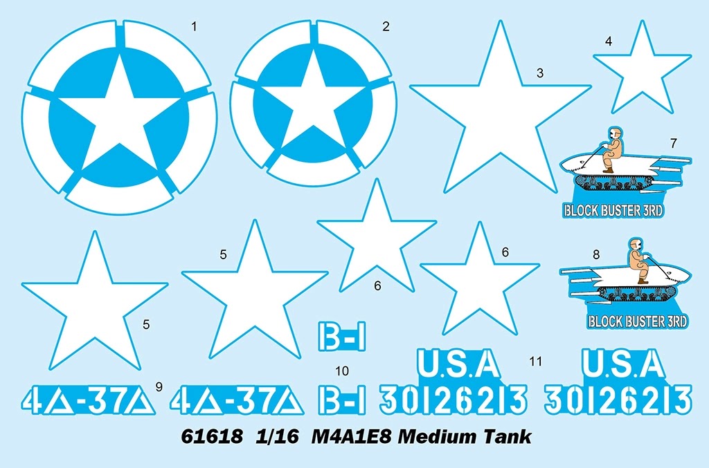 This late war version of the Sherman tank was an improved design produced between October 1944 and May 1945. It featured a 76mm M1A1 cannon (71 rounds), and secondary weapons included two M1919A4 Browning 7.62mm machine guns and.50cal M2HB Browning machines. This 33.5ton vehicle was powered by a Continental R974 C4 engine with 460hp and 9 cylinders. The kit includes markings