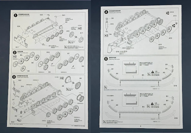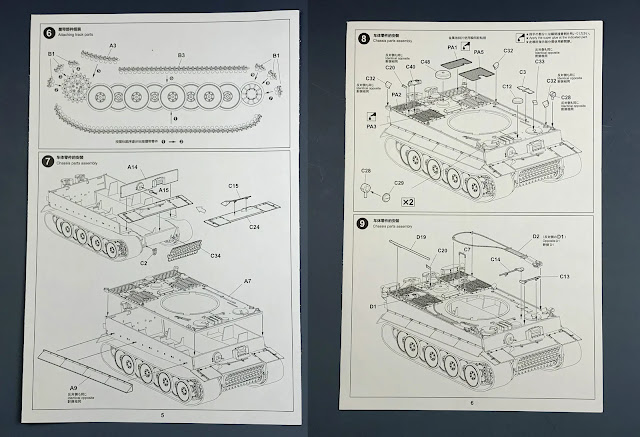 ‘s model makers. The instructions are in colour and show the color schemes for five Tigers. It’s like an old Tamiya kit or one from a lesser-known brand. It has a good metal barrel and some nice decals. There is very little photo-etch, and the track design is simple (but again no variations). This kit is a bit odd, but it’s a good choice for beginners or those who want something easy and simple.