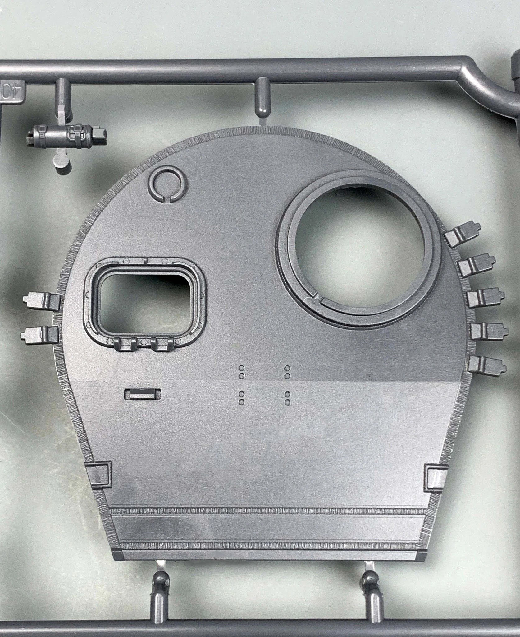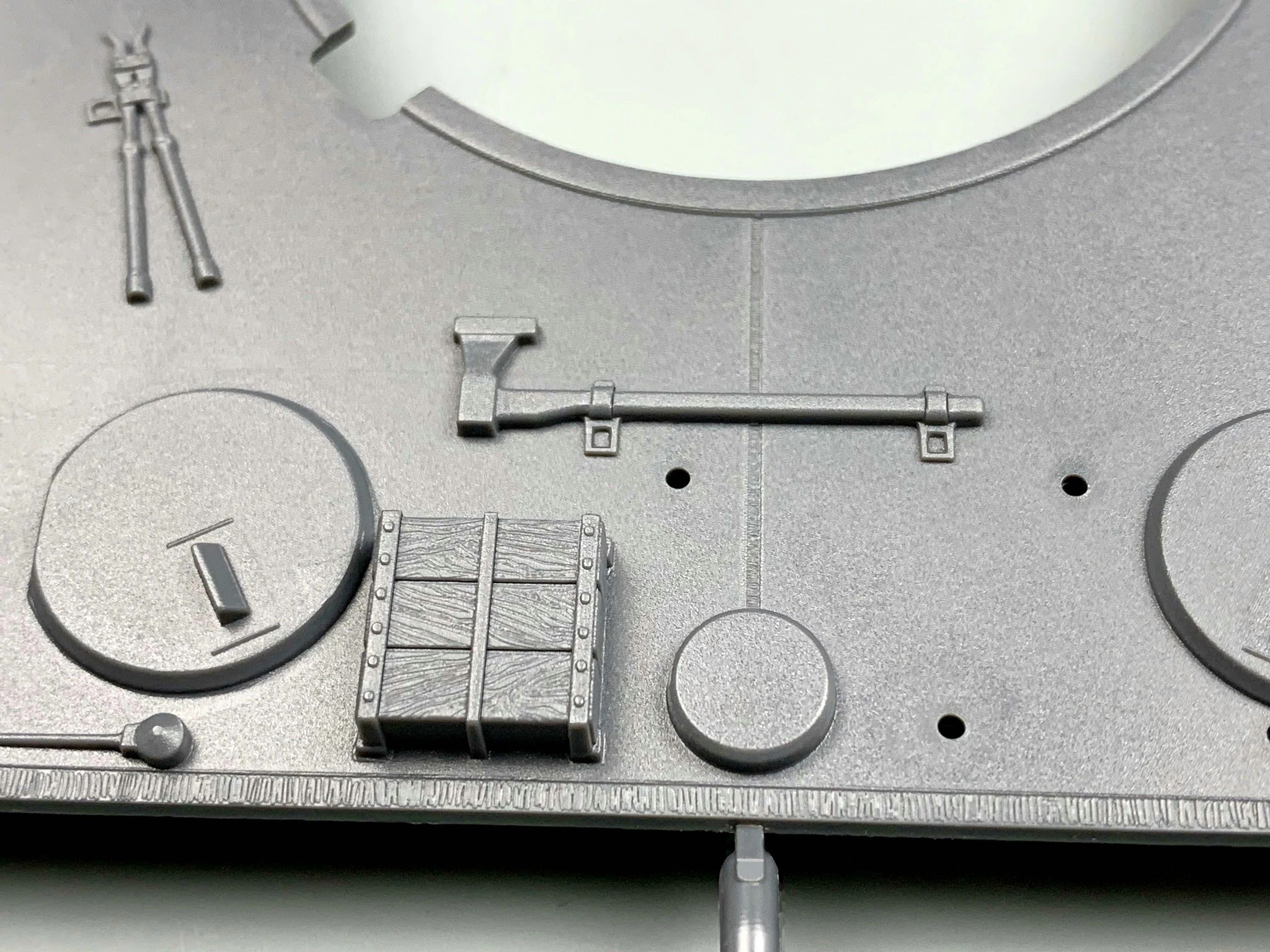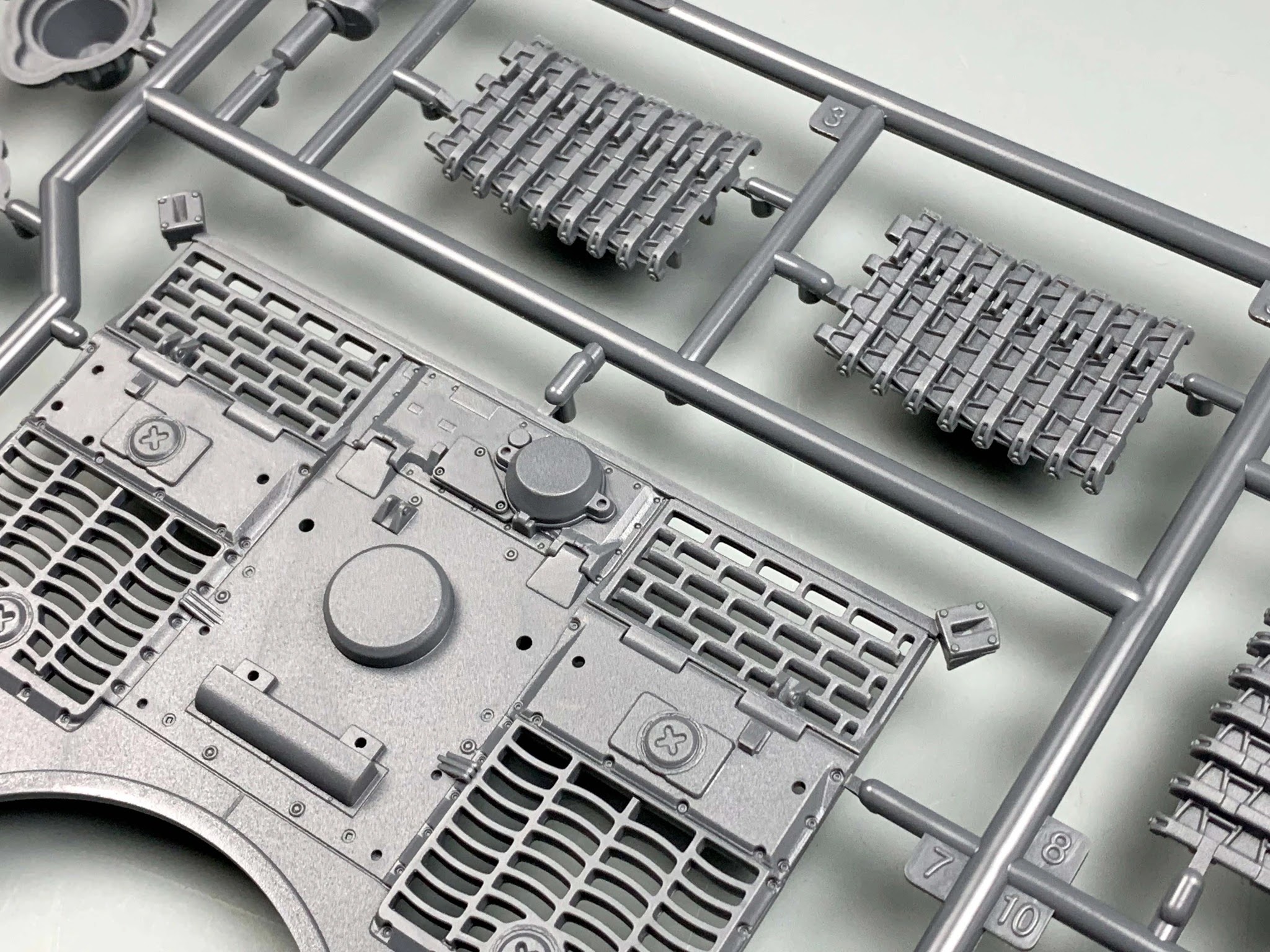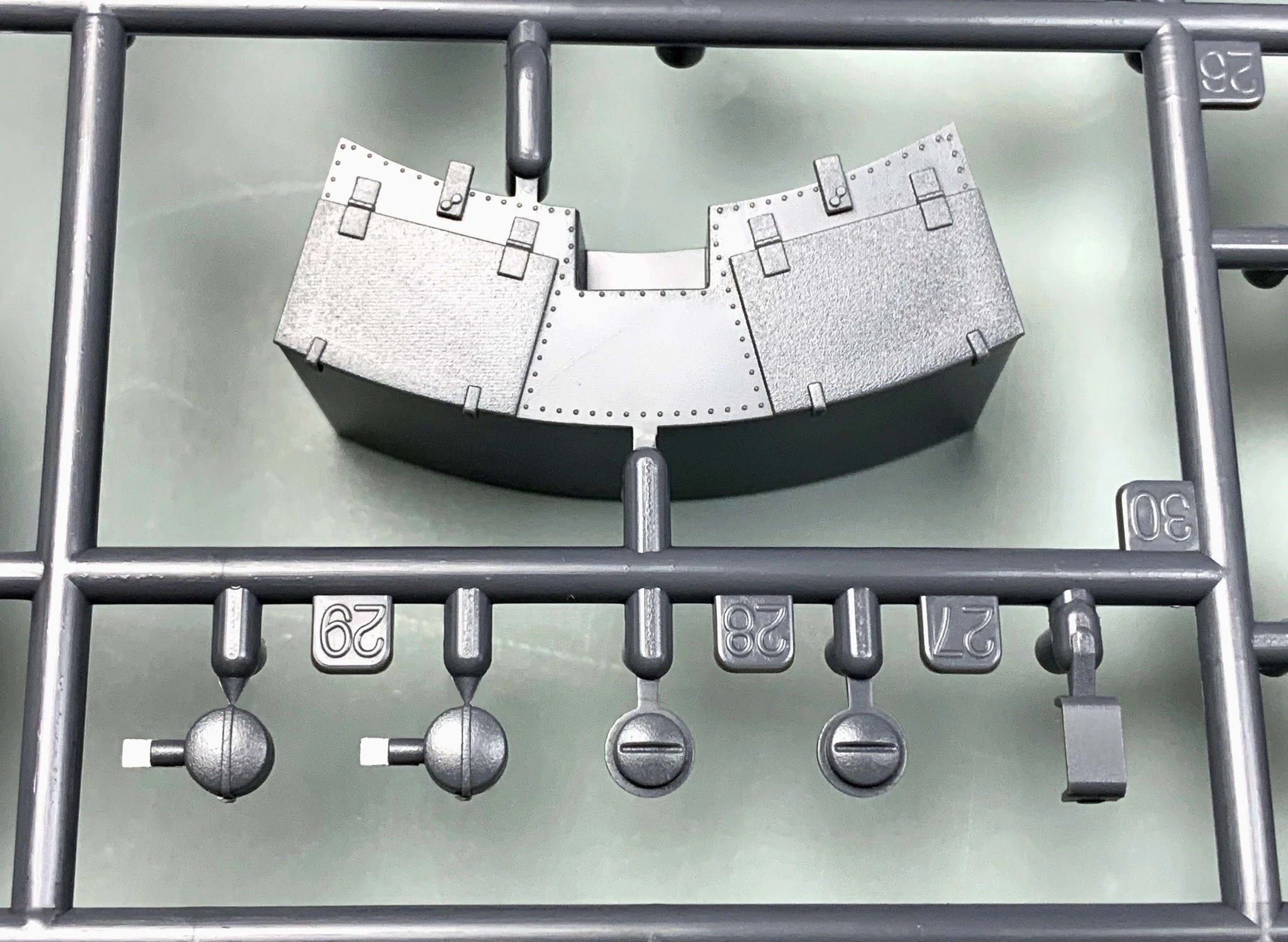 The weld seams on the turret gaps re prominent, regular and not that bad. The track holders are moulded on which isn’t the best for experienced modellers, but good for new modellers.