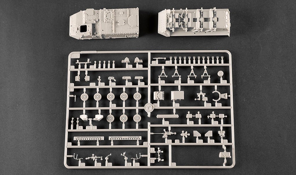 Total of 3 sprue ,upper hull , lower hull and tires