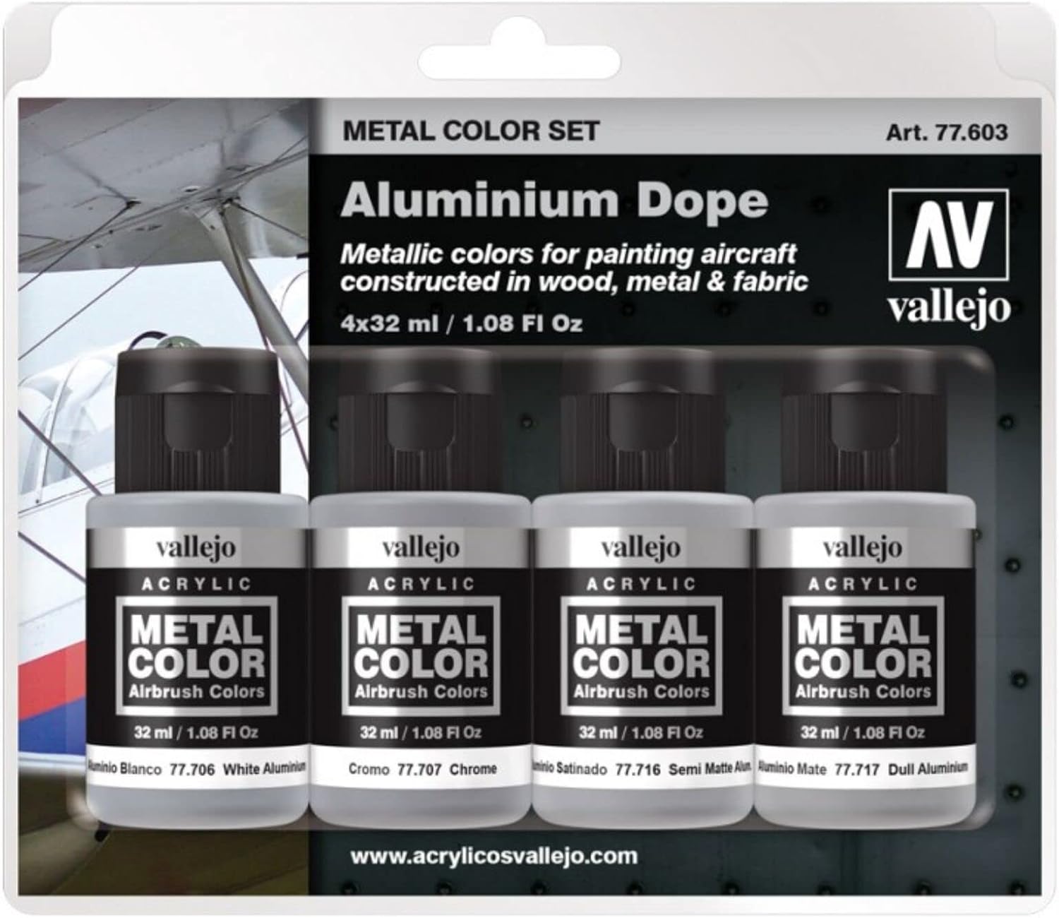 Metallic colors for painting aircraft constructed in wood metal fabric This set contains the basic colors needed for painting aircraft which are constructed with wood metal and fabric covering As an example for this tutorial we have taken the Nieuport Ni17 a French fighter of the first World War The aluminium colors of the finish give these airplanes a look which is quite different from the appearance of the fighters which were constructed entirely of metal It is recommended to consult photographic reference material for the choice of the best color combination to be used for your model Features. Assured for high quality and standards. Our products fulfill the requirements of our end users. Pack of 4Specifications. Release Date 2212019. Capacity 32 ml. Weight 2 lbs