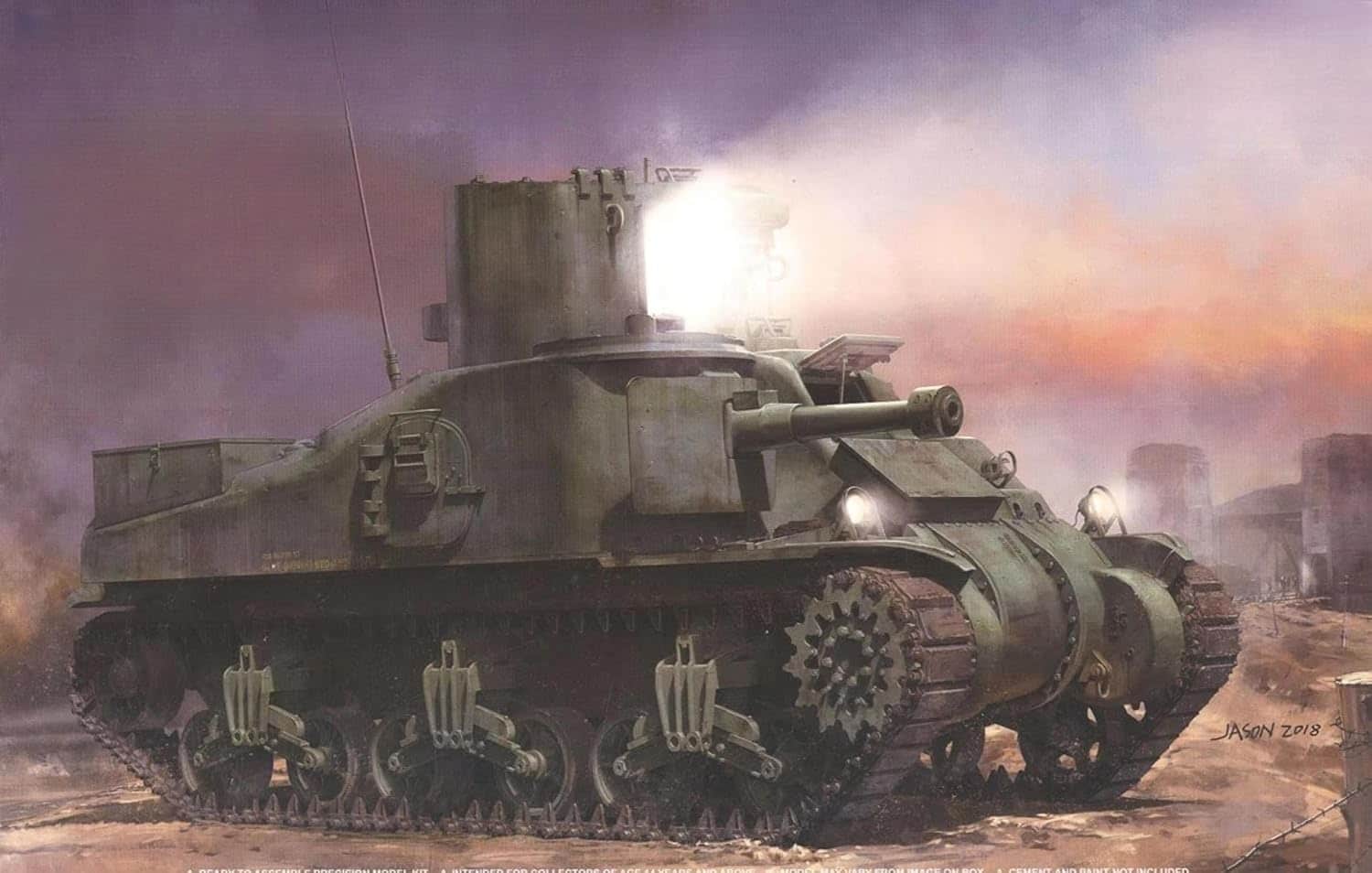 Includes template, decal sheet for 3 versions, 9 English figurines, glueable rubber tracks. El Alamein Anniversary Special 1942-2022