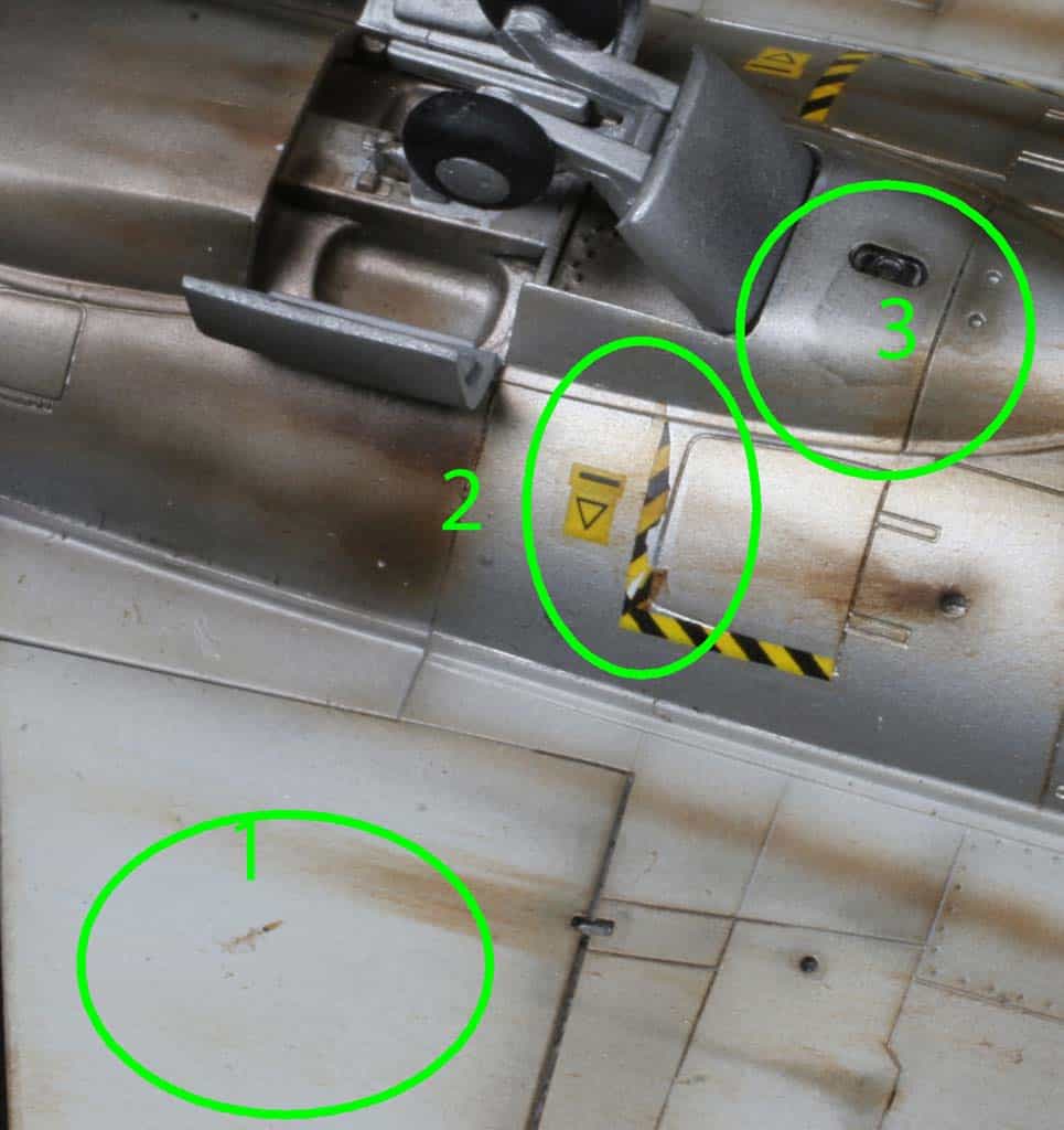 – Bottom aging; Although it seems excessive, it is a correct application as it is seen in more than one Draken photograph taken at different periods on the subject.