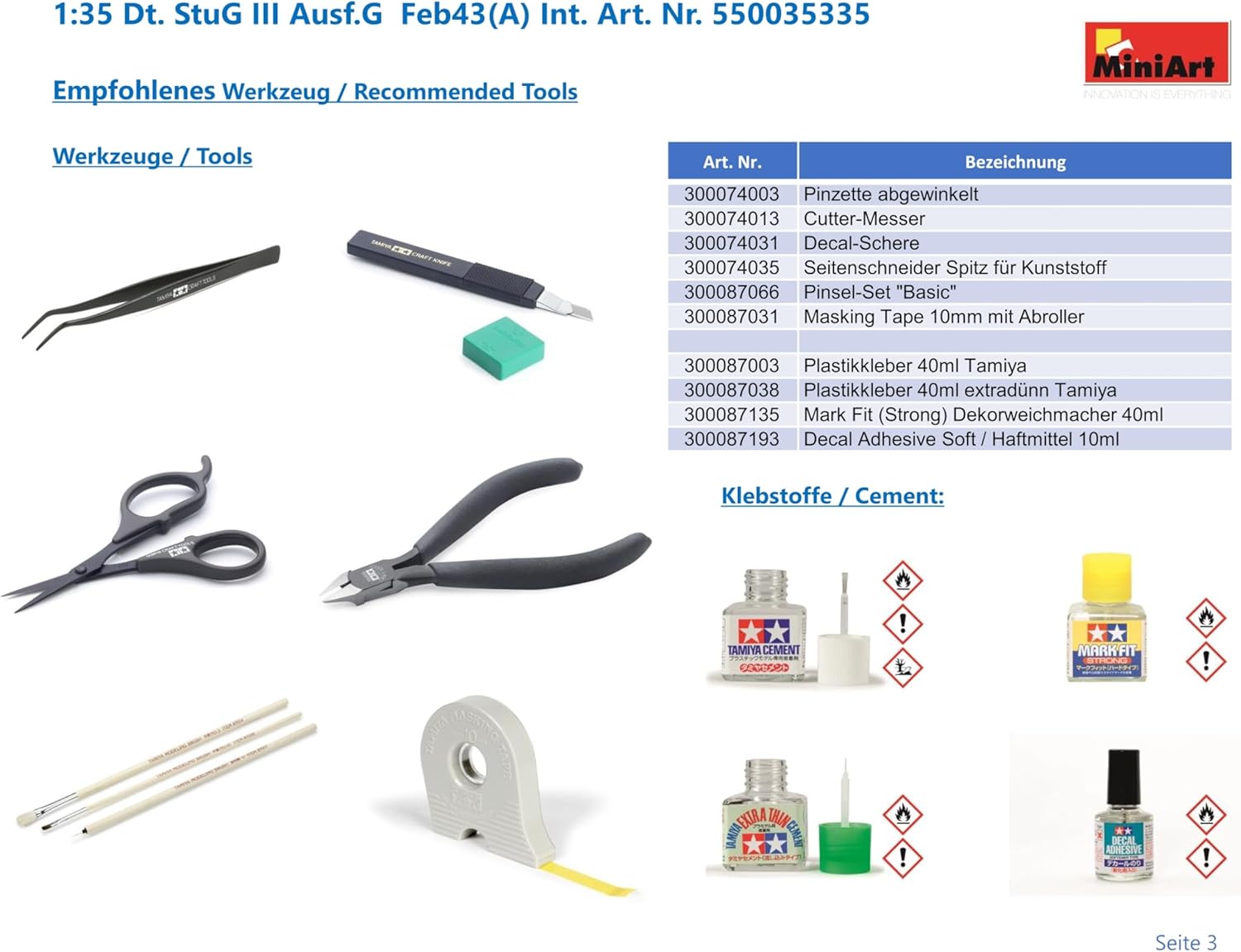 Miniart 1:15 – StuGIII Ausf G February 1943 Alkett Prod., Int. Kit Miniart 1:15 – StuGIII Ausf G February 1943 Alkett Prod., Int. Kit0101010Detailed scale-model kit. For ages over 14. This item is not a child’s toy.