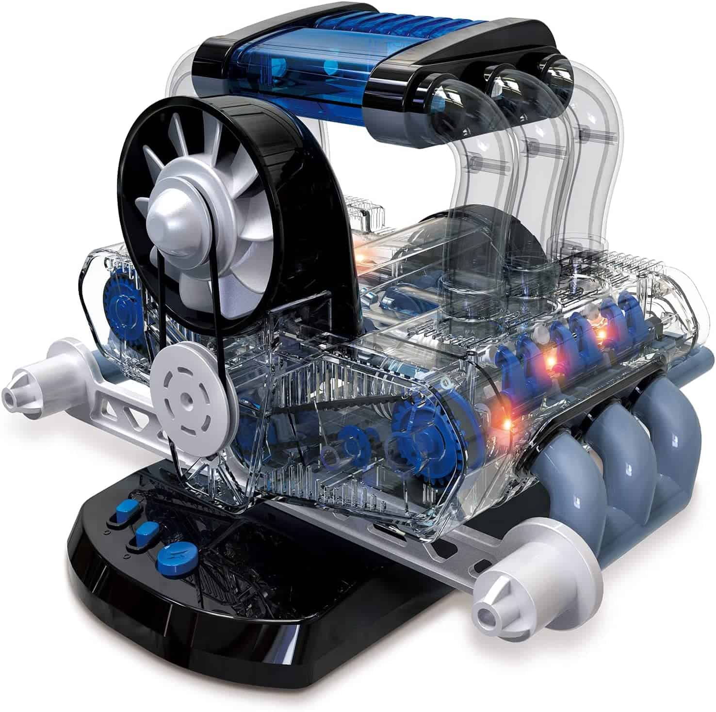 The kit includes over 320 pieces, so you’ll have fun putting it together. Plus, the clear plastic parts allow you to see the engine’s inner workings as you build it.