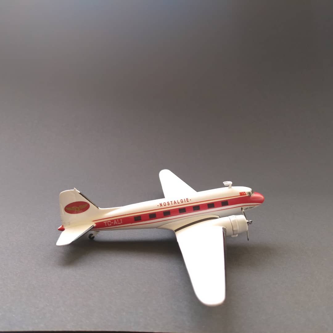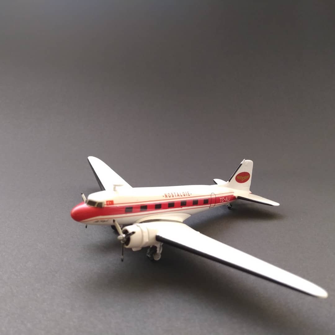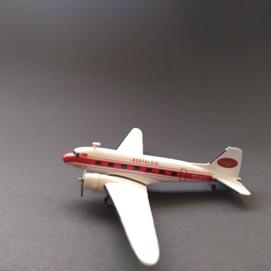 Bu günün bir anlamı olmalı . #sivrihisaruluslararasisportifhavacilikmerkezi ne inmiş olan 1940 model DC-3 ve TC-ALI General Aviation tarafından Koç Müzesine verilen ve yakın zaman da restorasyon geçiren TC-ALI. modeli ise çok keyifli bir custom yapım oldu. TC-ALI Karşınızda 1/200 Custom Aircraft modeli #aviation #aviationgeek #scalemodels #1_200scale #inflight200 #geminijets #herpa #hogan #phoenix_model #airline #airlines #air #airplane #plane #custommodel #turkishairlines #airbus #boeing #b727 #tupolev #tu134 #lockheed #l1329 #jetstar #douglasdc3dakota #rahmikoçmüzesi #piloteyes #pilot #nesuair