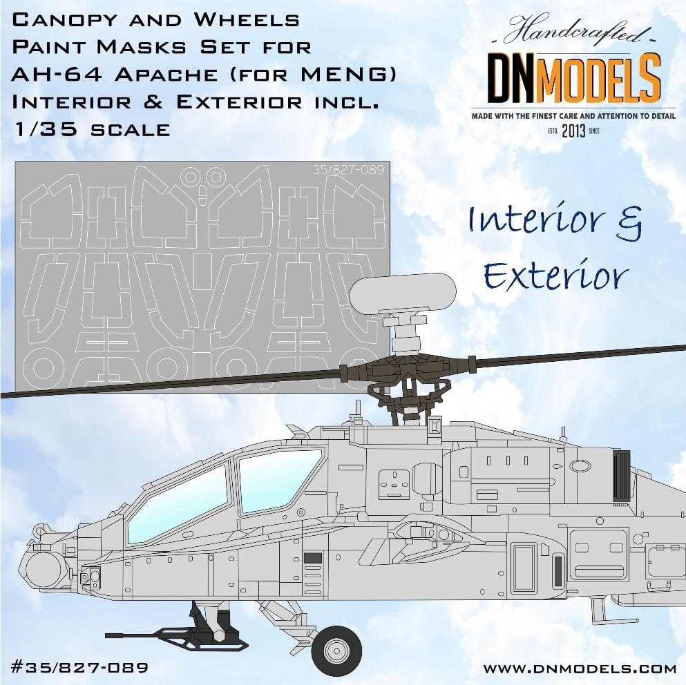 DN Models have immune a Cover & Wheels Paint Mask All set in 1/35 for Meng’s AH-64 Apache helicopter.