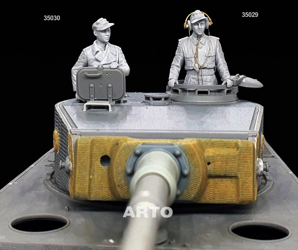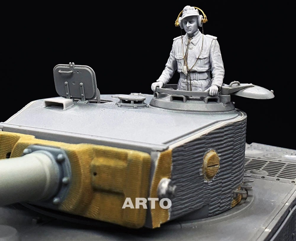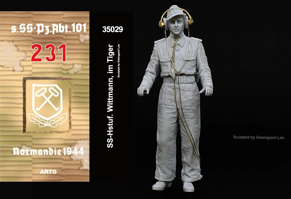 This figure depicts Michael Wittmann aboard the Tiger I number “231”, based on famous news reel footage taken in July, 1944. This figure is a departure from the previous release 35021 Wittmann which depicted him as an SS-Obersturmfuhrer at the Battle of Villers-Bocage. This new release depicts Wittmann as SS Hauptsturmfuhrer following his promotion and the award of the Knight’s Cross of the Iron Cross With Oak Leaves and Swords. The figure has been updated to show this new rank. This includes the Knight’s Cross and neck collar. This figure is compatible with Tiger-I models “007 or 231”, as it shows Wittmann in the Tiger-I pose. Additionally, the item includes etched headphone parts for a more detailed and realistic representation.