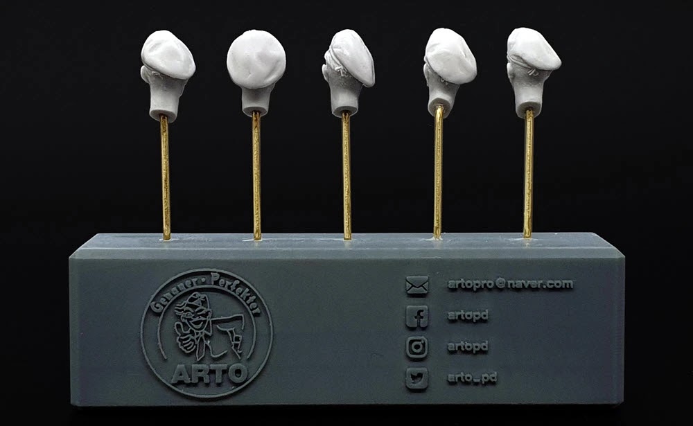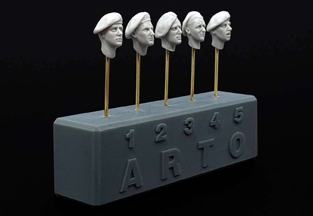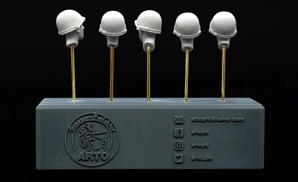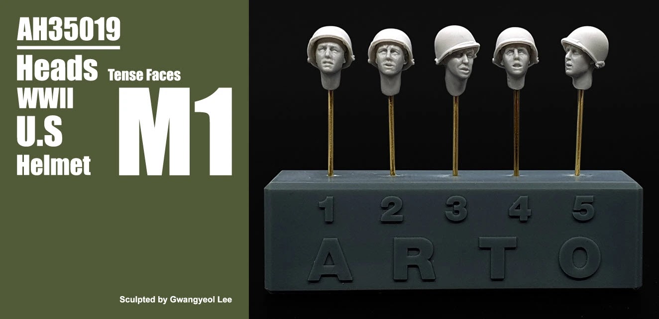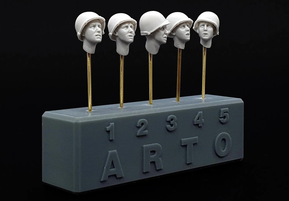 This U.S. military headset features a highly detailed M1 helmet, accurately capturing the dual structure of the inner helmet and steel helmet. This set contains five heads.