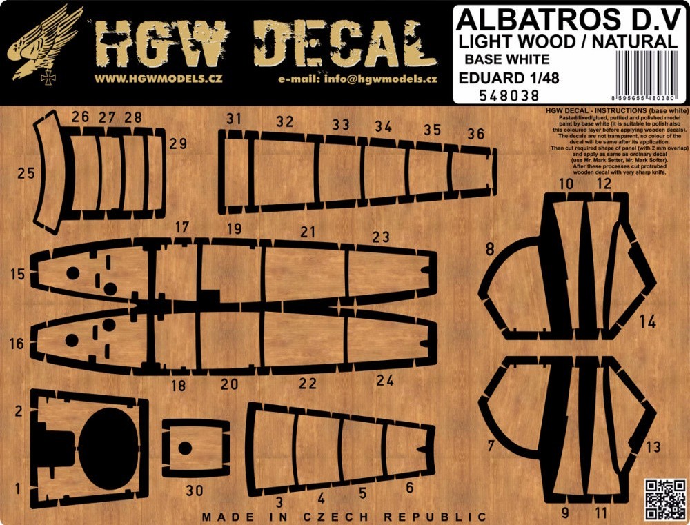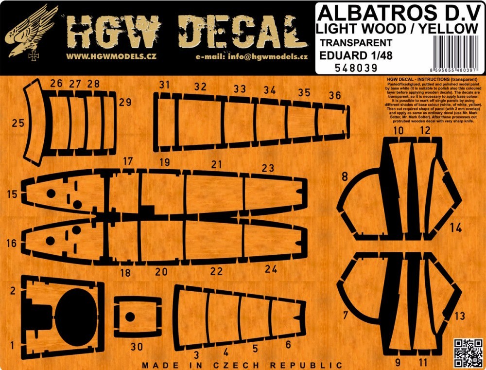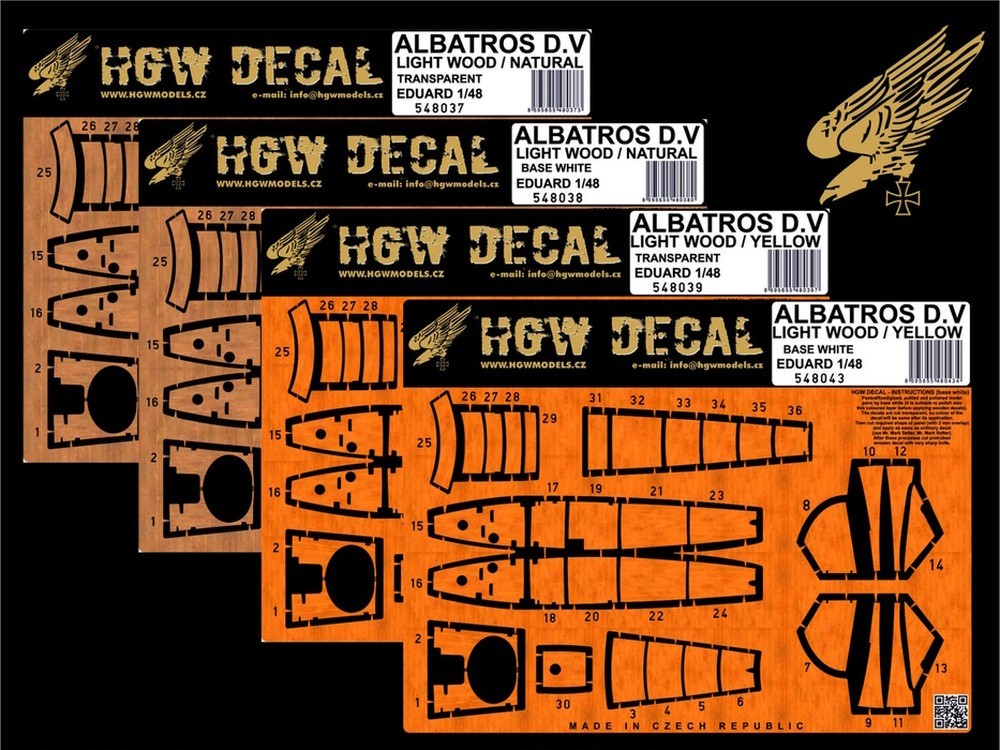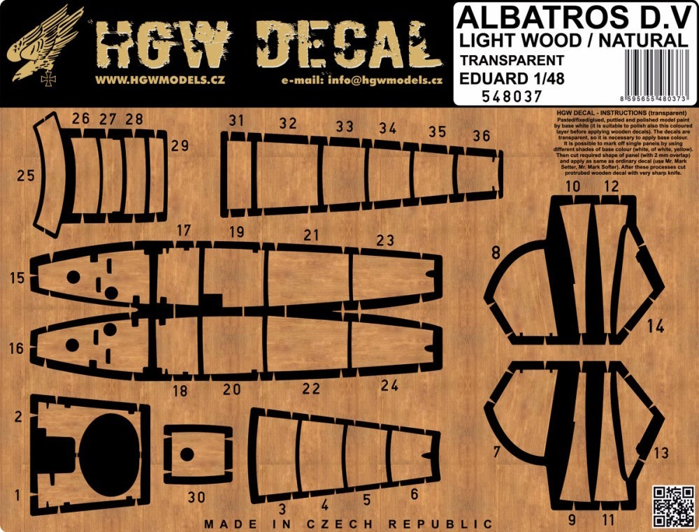 HGW released four 1:48 scale wood decal sets for the Albatros D.V. and D.VA fuselage panelling.