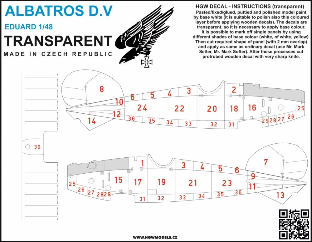 ………………………………………………. HGW1:48 scale laser cut decals for the Albatros include:
