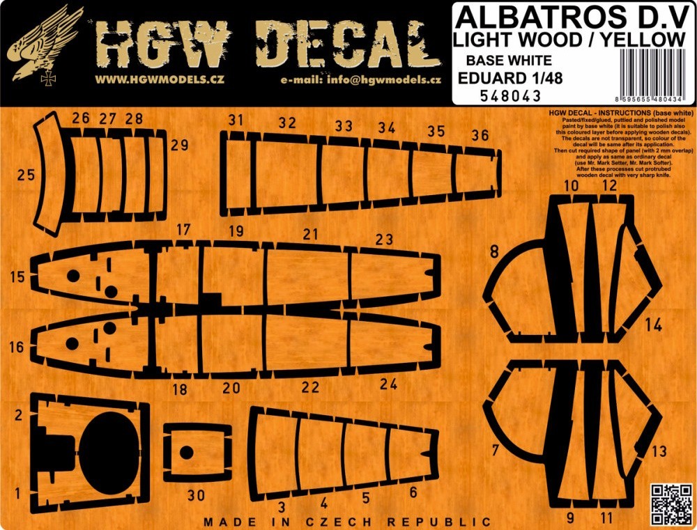 - 1:48 scale laser cut decals for the Albatros include:548043[Light wood / natural]