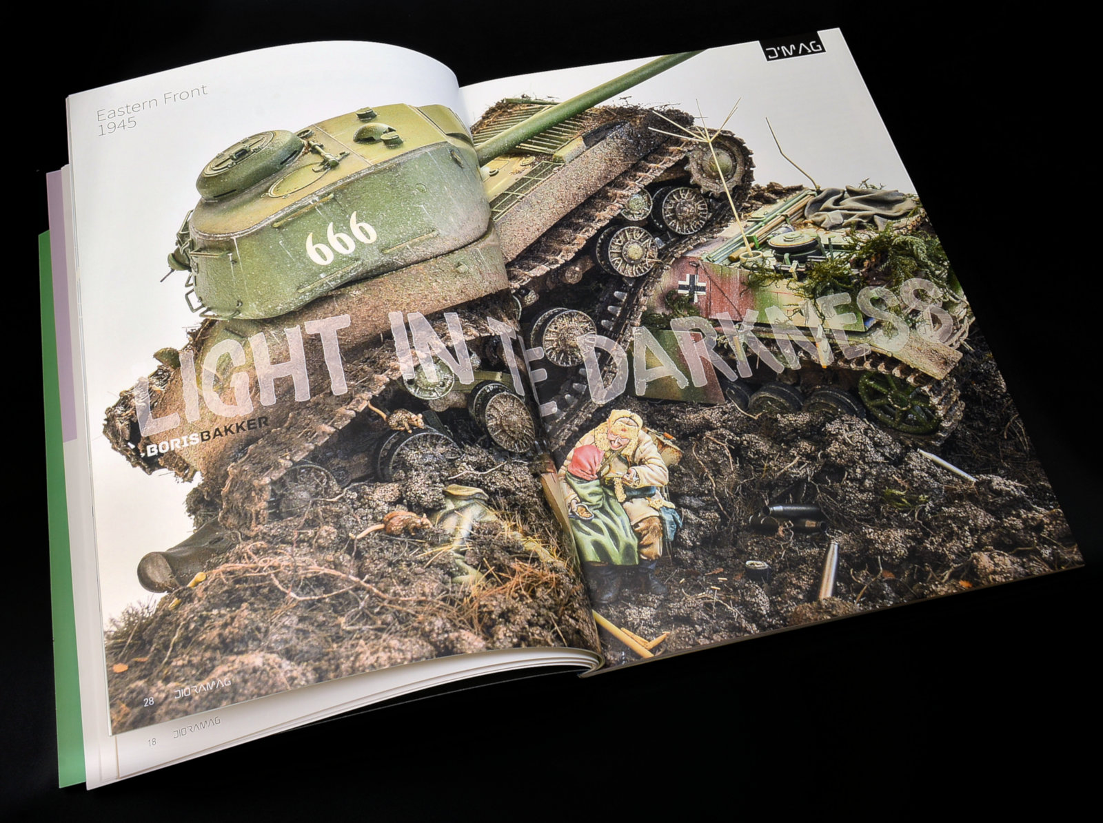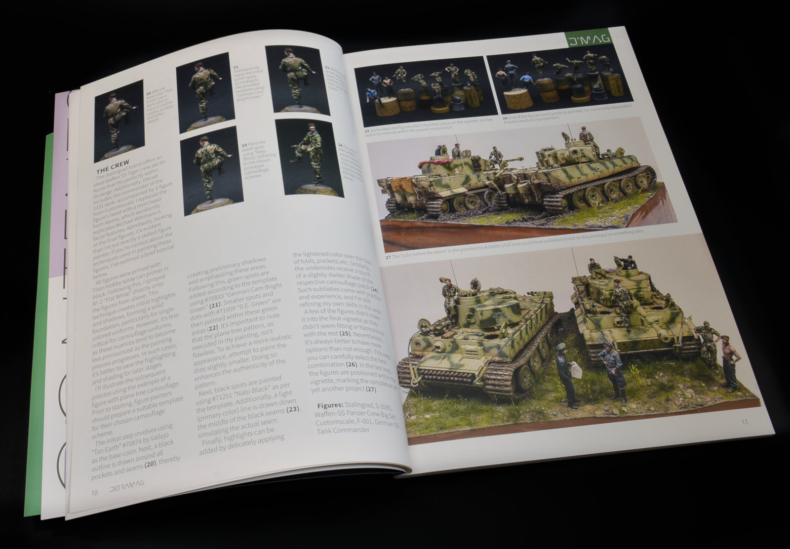 Showcase Dioramag: Christian Bruer – known especially for his smaller scale masterpieces – Christians work is still making people notice. This issue includes a tour of Bruer’s works. Sorry, my picture of his plane was a little blurry, and I’ve left it off here. Soldiers on a roadside crossroad, Kettenkrad, and the newly released Tamiya Hellcat. He shows how he sets up the scene and adds figures by The Bodi & alpine Miniatures. The stages are described in great detail, including the build, painting and weathering. This grim scene could have been anywhere in Europe. (This one states in 2021). It is called, “Dear But Not Forgotten”. Four dead comrades are buried together. This issue is no exception. I love the series and think that you’ll enjoy it as much as me.