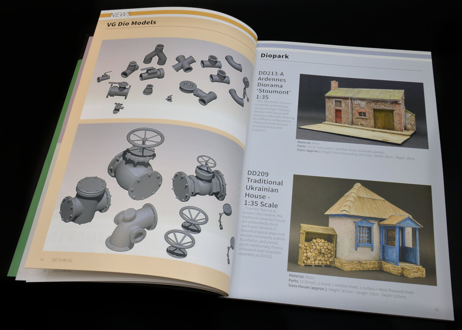“The Calm Before the Storm” by Thomas Birzer shows the build up of the super weapons of Nazi Germany before the so-called largest tank battle in history (the jury is out on that one). This scene shows the calm before the Storm with two Tiger I tanks, plenty of figures and groundwork. Not only is the tank shown in its bare plastic but also in various stages of camouflage, wetting, dirt, grime, and grease. The grundwork underneath the tank, which many modelers find difficult to paint, can also be seen. We see this time some great building accessories and period-appropriate building fascades by VG Diorama. Here are some great products I never knew existed…