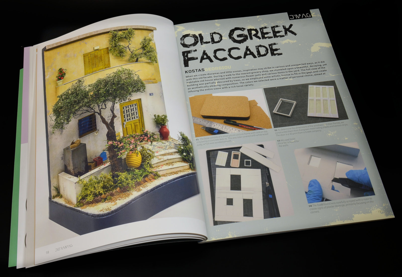 A beautiful and peaceful scene, like the one in this next diorama by Kostas Georgiu can be an excellent diorama. “Old Greek Faccade” is next, where over nine pages we see this scen built, literally from the ground up in step by step fashion…