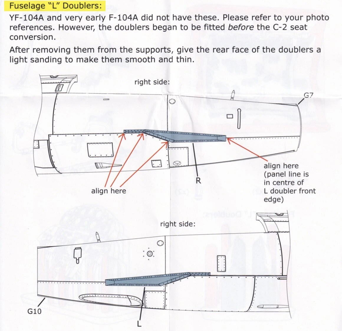 Hypersonic providers a full set of the reinforcement doublers applied to certain F-104 during their life. Check the references of your specific aircraft as early F-104As and YF-014As didn’t have them. As explained, the doublers began to be fitted before the C-2 seat conversion so Hypersonic have included them in this early set for completeness.