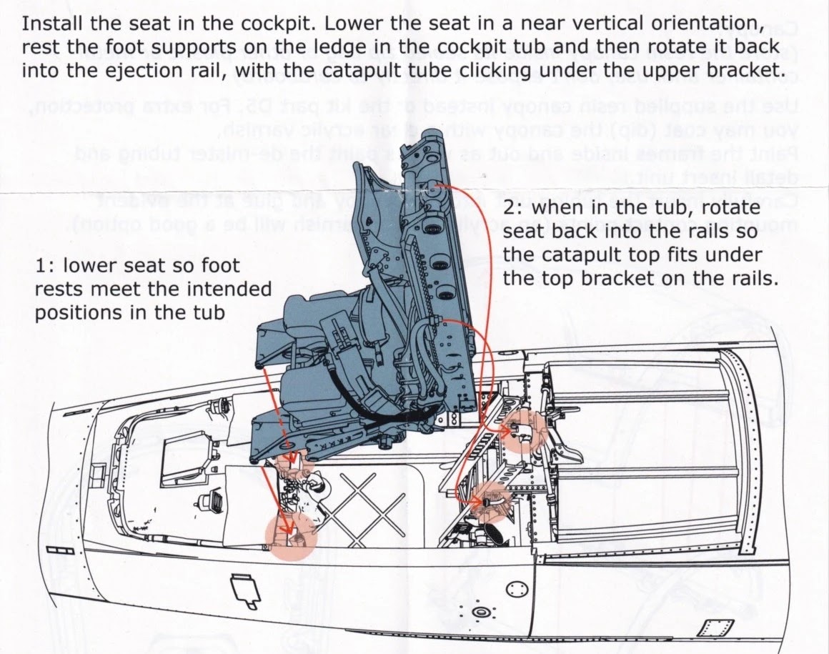 These parts are just dripping with detail and much of it will clearly be seen through the kit windshield. I think that the two parts you don’t use could be used for other F-104s. The “canopy pyro charges” on the canopy sills need to be removed as they were not installed with the downward firing seat. ! Enjoy. Each coaming can be dropped into the Kinetic Kit. This, along with the improvements to the rear bulkheads really enhances the look of the kit. Hypersonic has taken advantage of 3D-printing to provide the C-1 Ejection seat in a single, painted piece. It is precisely designed to slot into new rails in the rear bulkhead. The F-104 flew at a speed that made it impossible for the pilots who were being thrown from the plane to reach the tail assembly with the standard upward firing ejection seat. Older aircraft were easier to escape due to slower speeds, but the high velocities of the new airplanes required new ejection engineering.