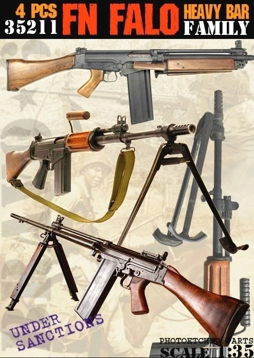 B6-35221 FN FALO Big Bar Society contains 4 rifles with a obese barrel, bipod, and a longer brochure.