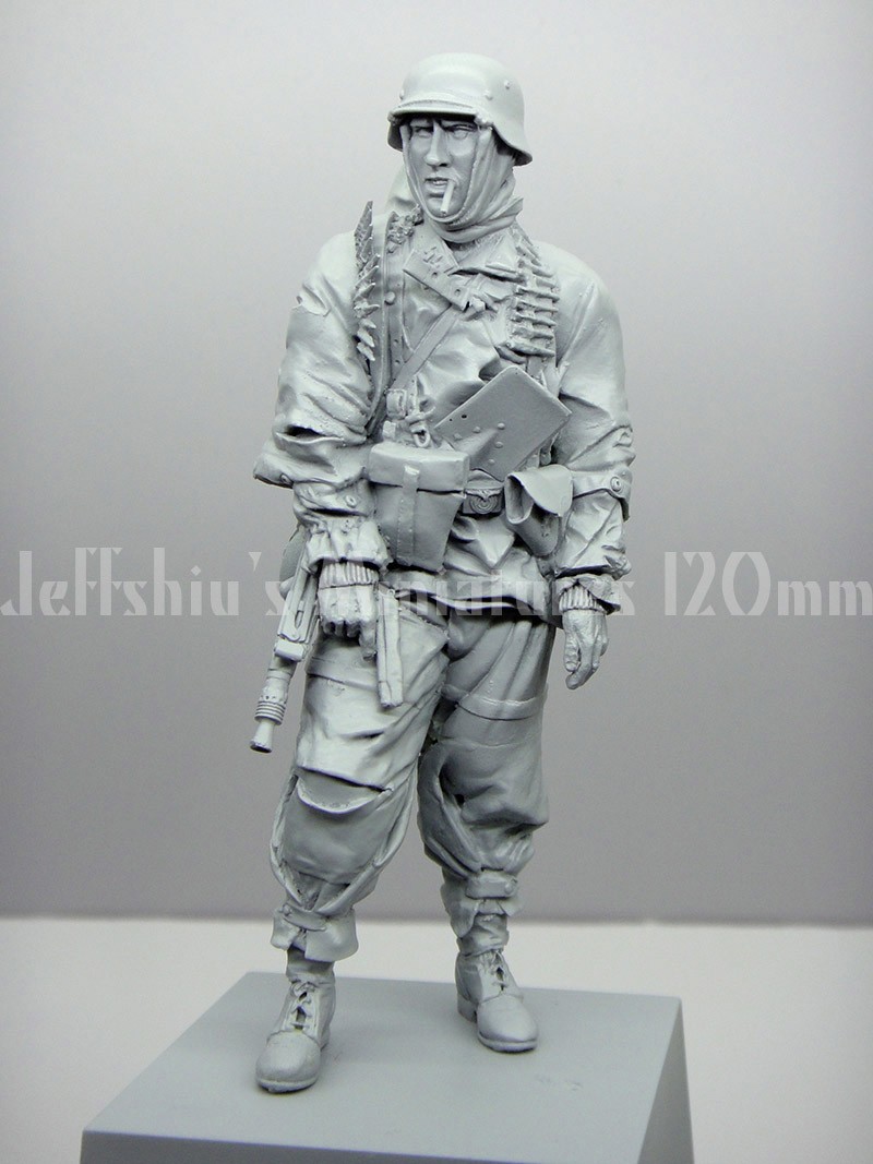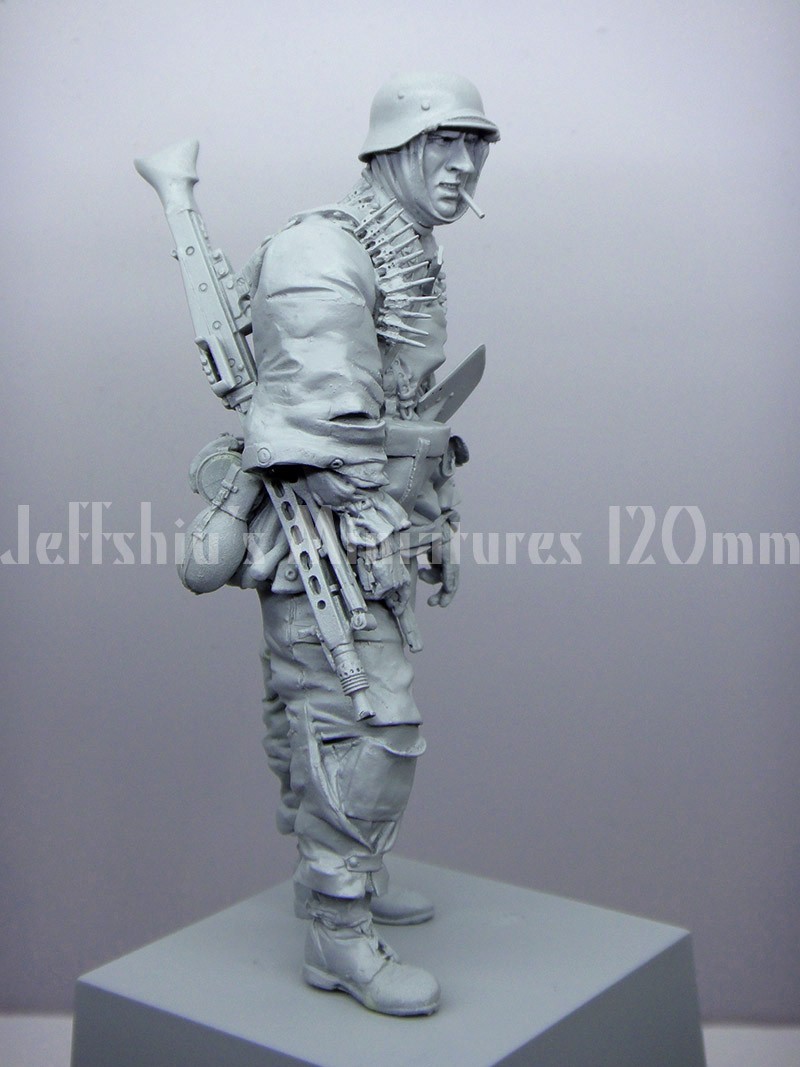 Jeff Shiu reworked one of his earlier figures, based on the famous wartime photo of a German Machine Gunner from Ardennes, 1944.