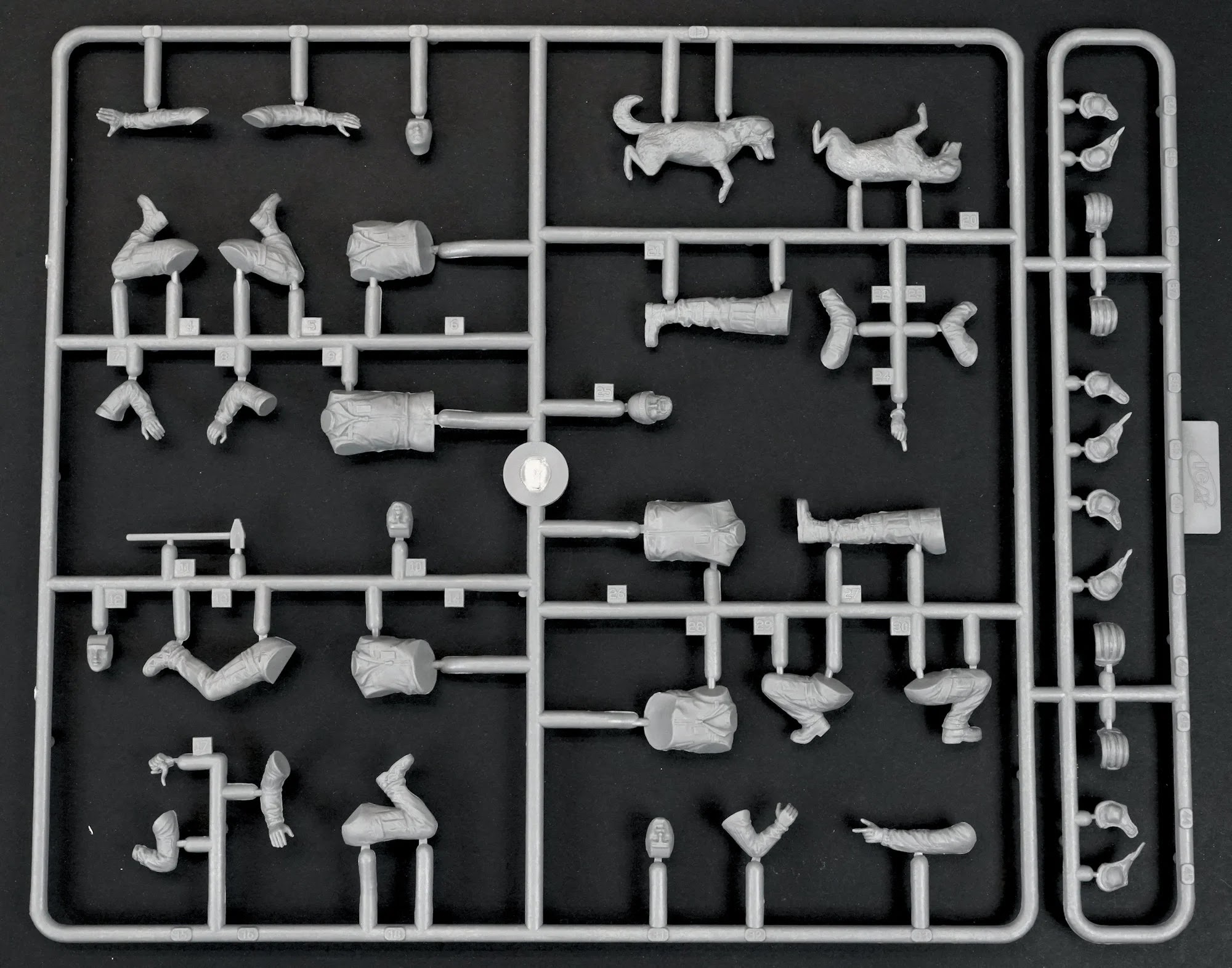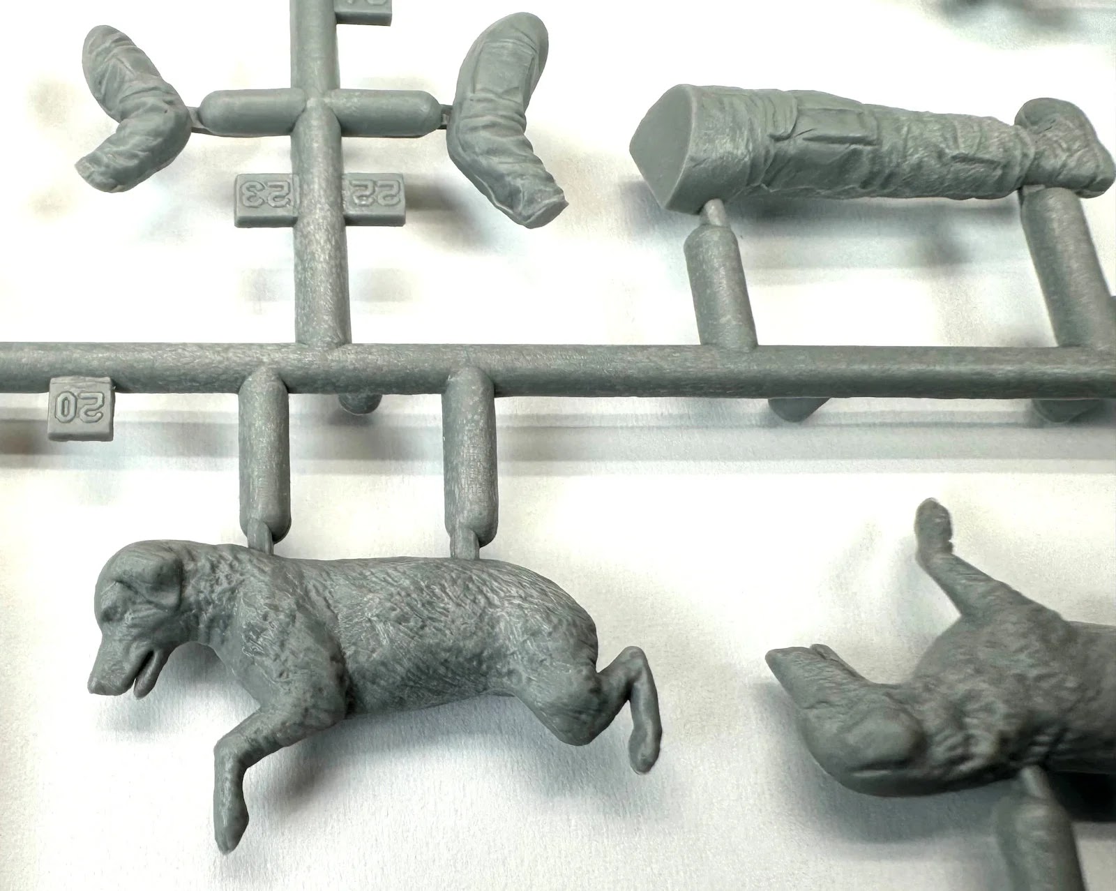 The figures come as part of one single sprue fret, and interestingly, you get a fifth figure and a dog.