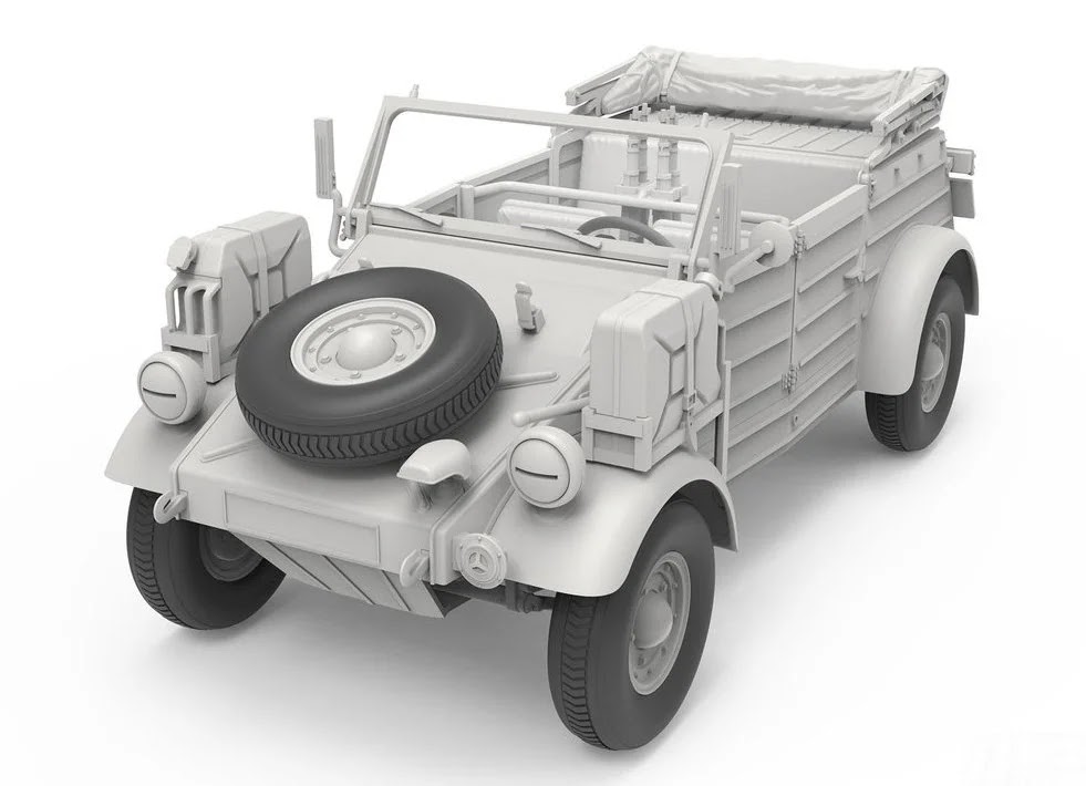 Kit No #VS-015Meng is in production of their new-tooled German Pkw.K1 Kubelwagen Type 82 (North Africa) in 1/35th scale. Meng 1/35th scale