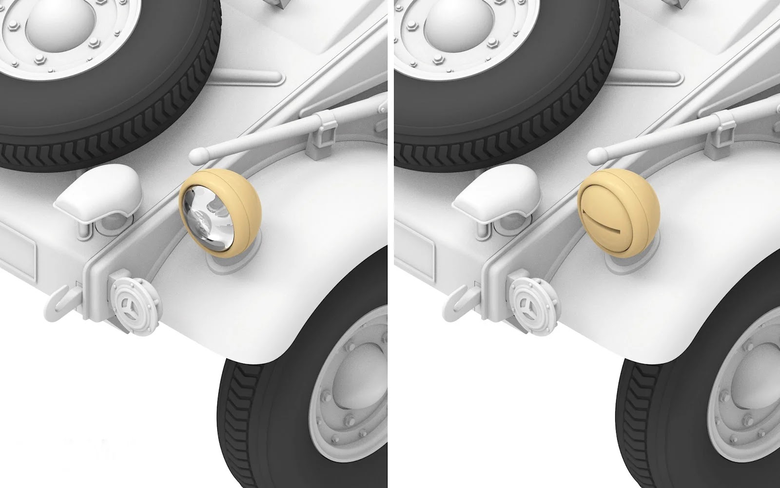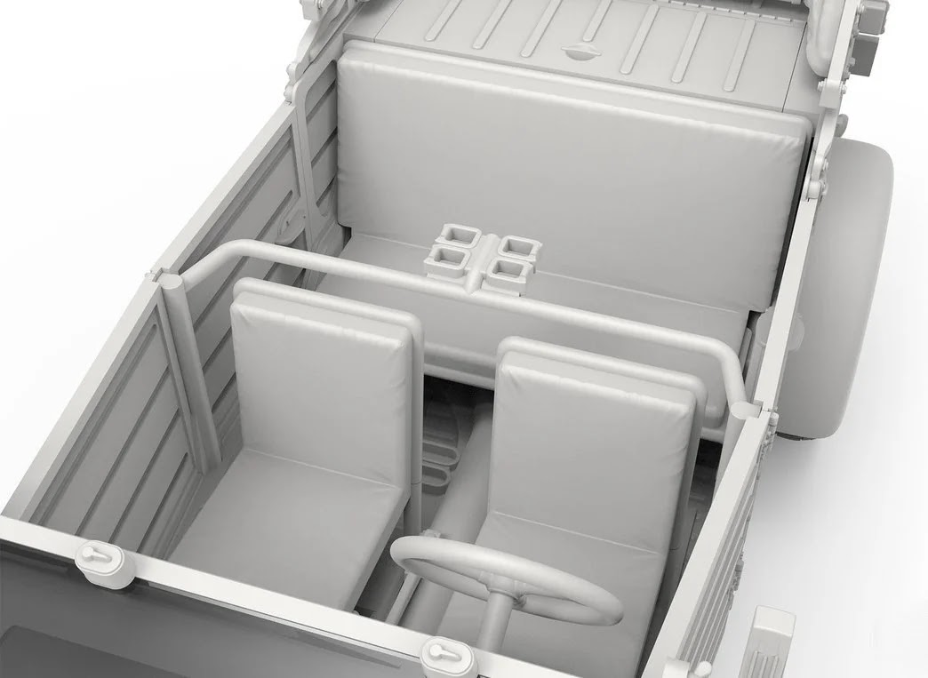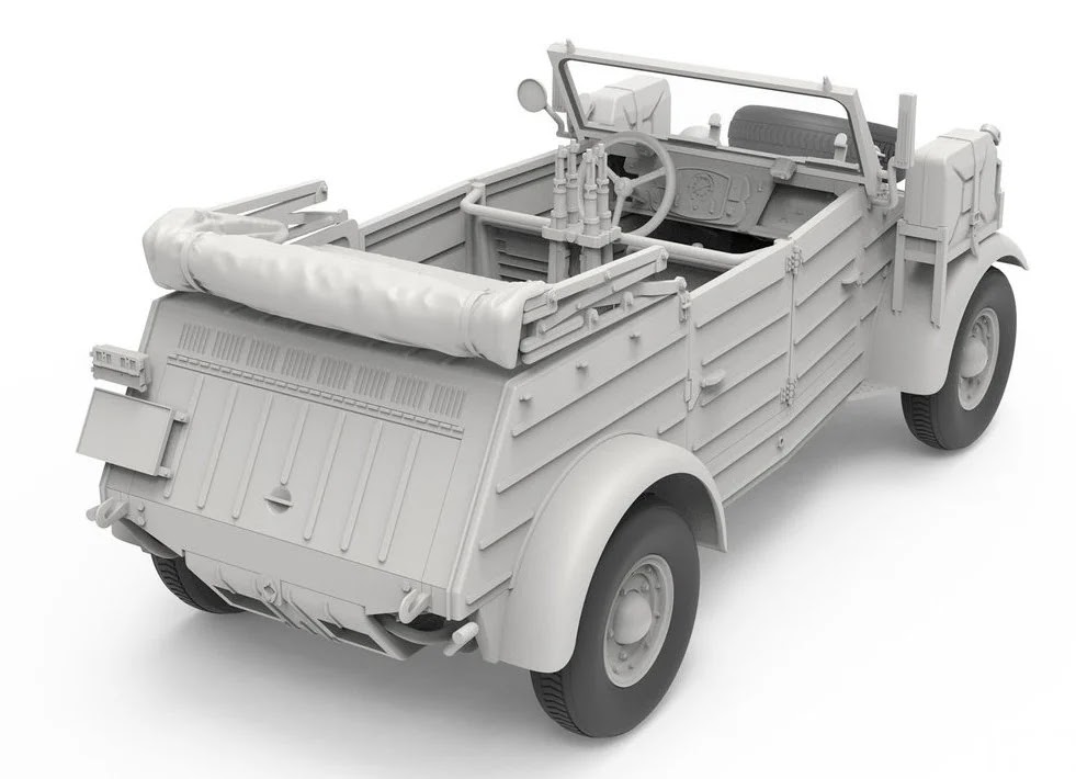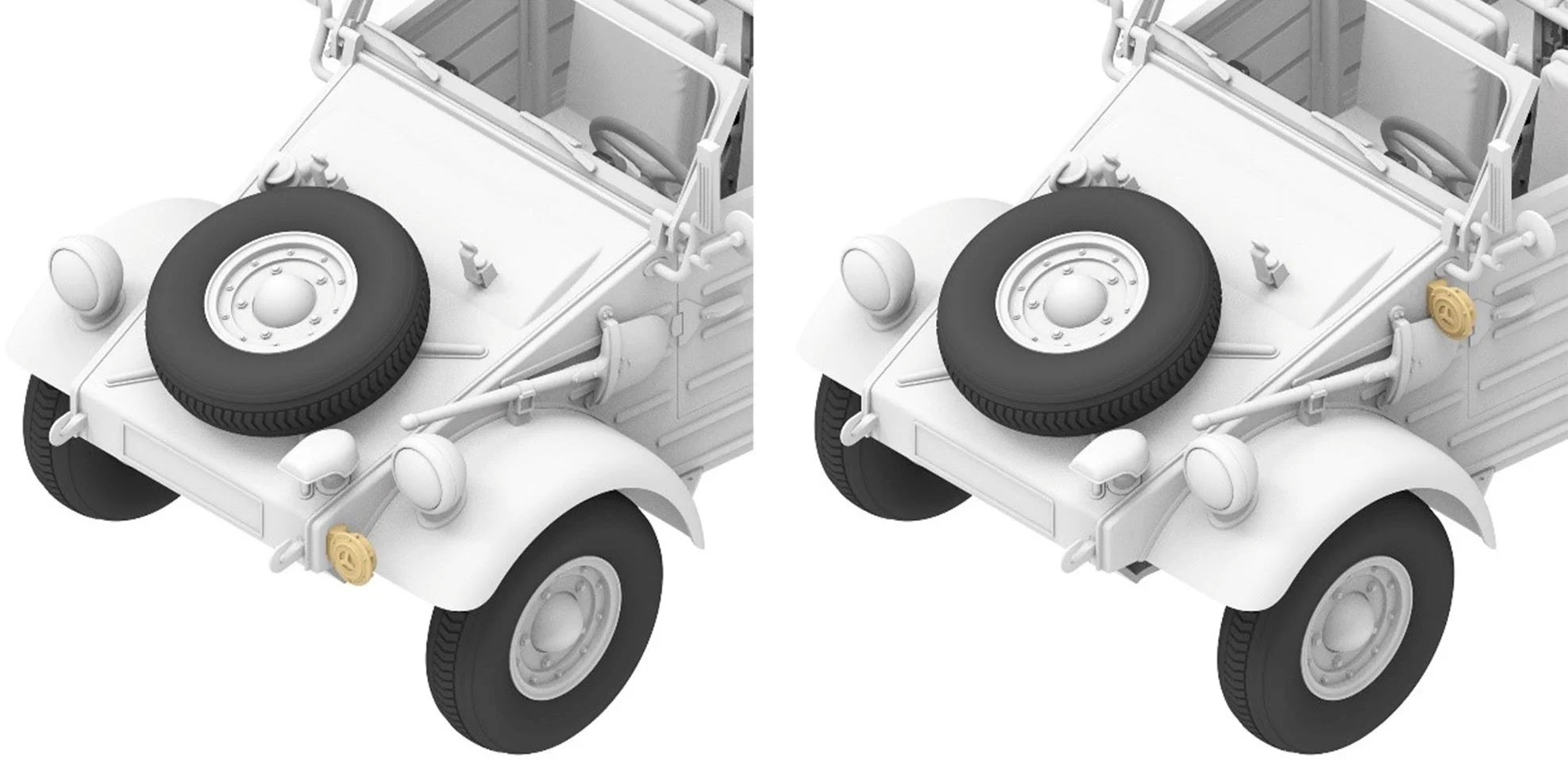 the horn 01001010on early bucket cars was installed below the left rearview mirror, while later models had it moved to the front of the left fender. We have created two different mounting positions to meet the demands of modelers. You can choose either position based on your preference.01001010For the headlights, Meng will provide both transparent covers and light control covers. You can choose to build either version according to your preference.01001010We don’t know how this got through to the keeper, and you may well like vynil tyres, but we do not know why people keep on making them in their kit releases.01001010This kit includes a folded soft top designed by digital sculpting. Other details of the vehicle are accurately represented.01001010The front windshield can be assembled up or down, your choice…01001010The Pkw.K1 Typ82 features independent suspension and a rear-wheel drive system, with the front axle being a steering axle. The design of the model requires additional parts in order to reproduce the steering mechanism. The assembly will be extremely difficult, and small pieces may even break because of insufficient strength. Meng, having carefully considered the design, decided to abandon it. It features a snap-fit design.01001010The separate floor parts match the actual structure of the rails and is easier to paint.01001010Optional parts are included such as a Kar 98k rifle and extra fuel tanks. It features a simple snap-fit design.01001010The separate floor parts match the actual structure of the floor rails and is easier to paint.01001010Optional parts are included such as a Kar 98k rifle and extra fuel tanks.01001010The chassis has a three-stage disassembly design, reproducing the structure of the actual car.01001010This new kit from Meng is still in development so keep an eye out here, or on 01001010for more info on this new model01001010