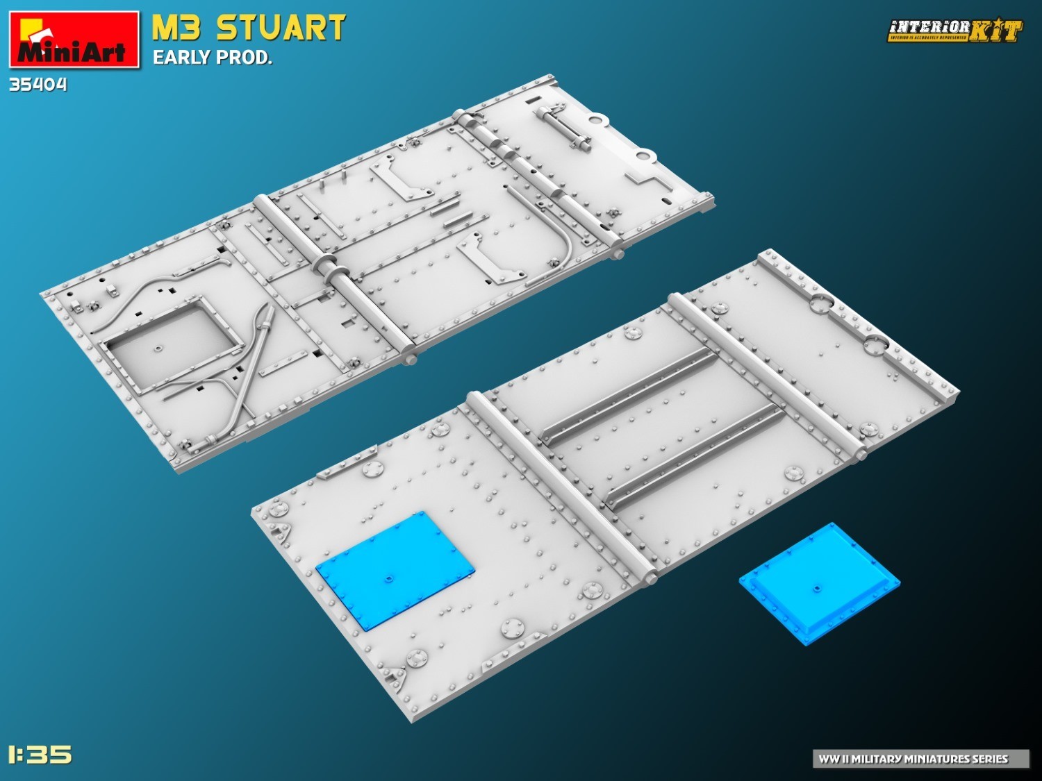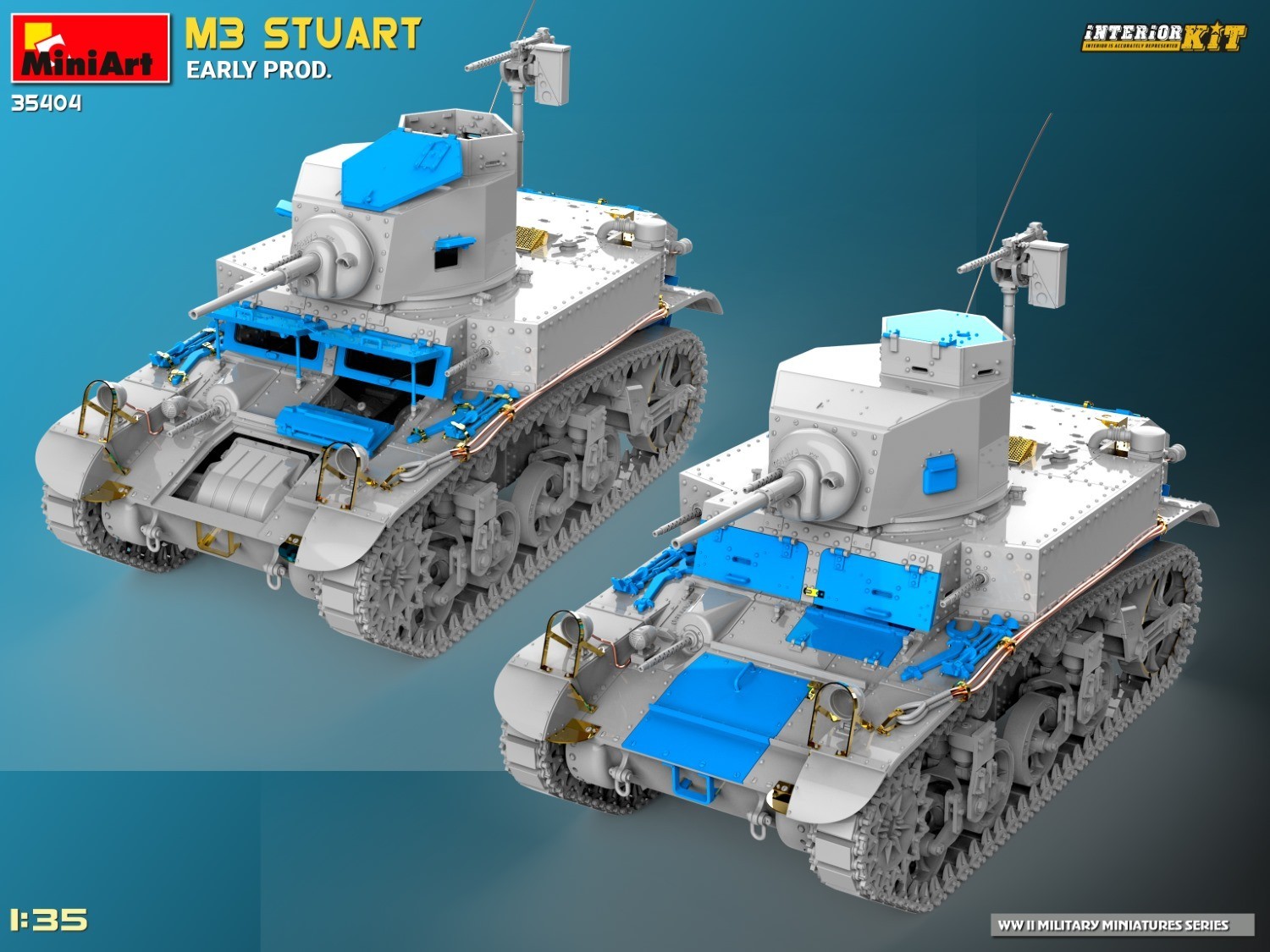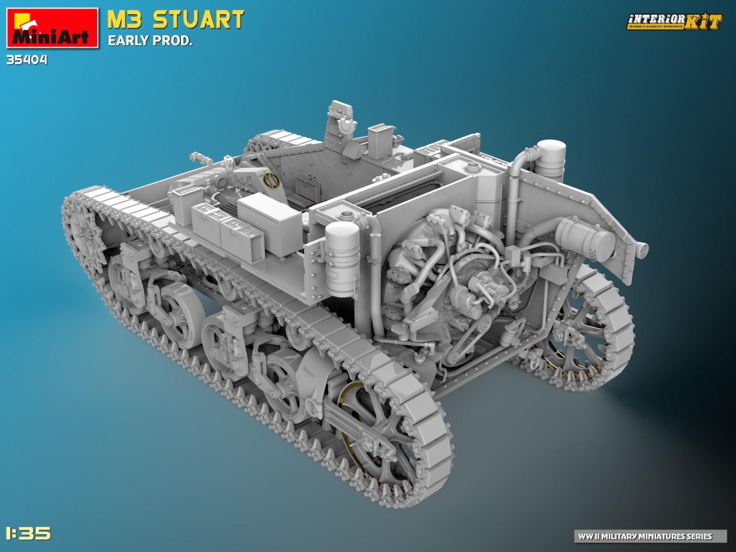 MiniArt Kit #35404 Stuart Early Prod. in 1:35 Scale is now available. Interior Kit
