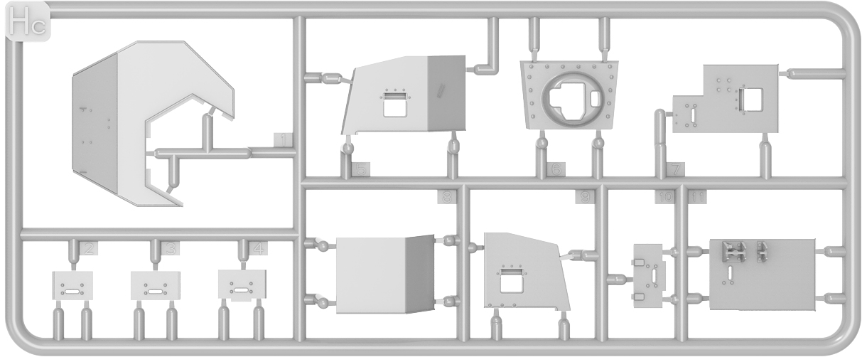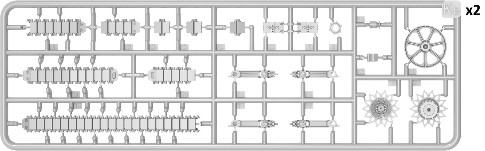 There are nineteen sprues in grey plastic in this kit. This includes the whole interior of the tank, engine, crew compartment and ammo included.
